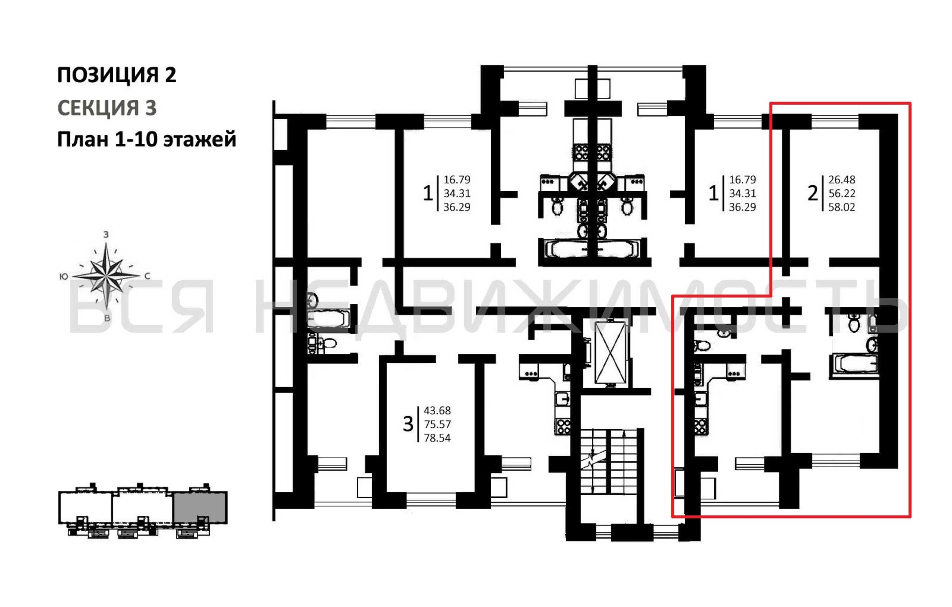 2-комнатная квартира, 58.02 м² 7/10 этаж ID объекта 100132223