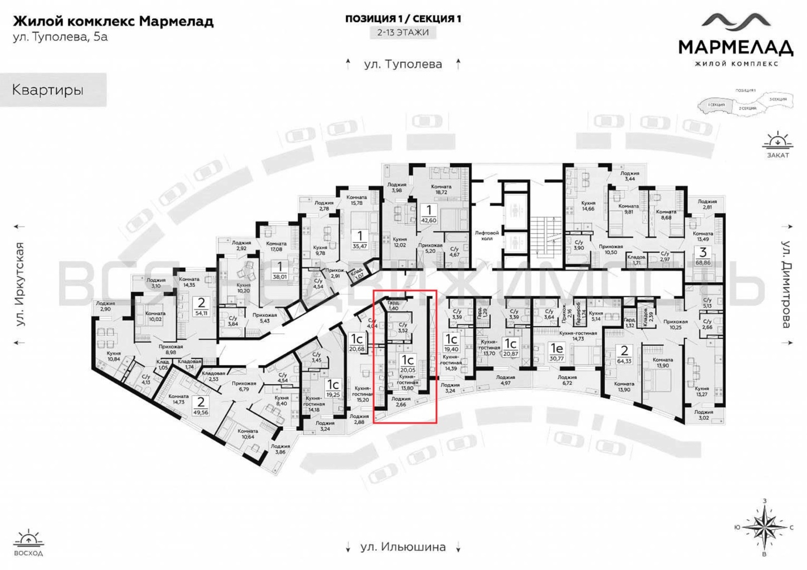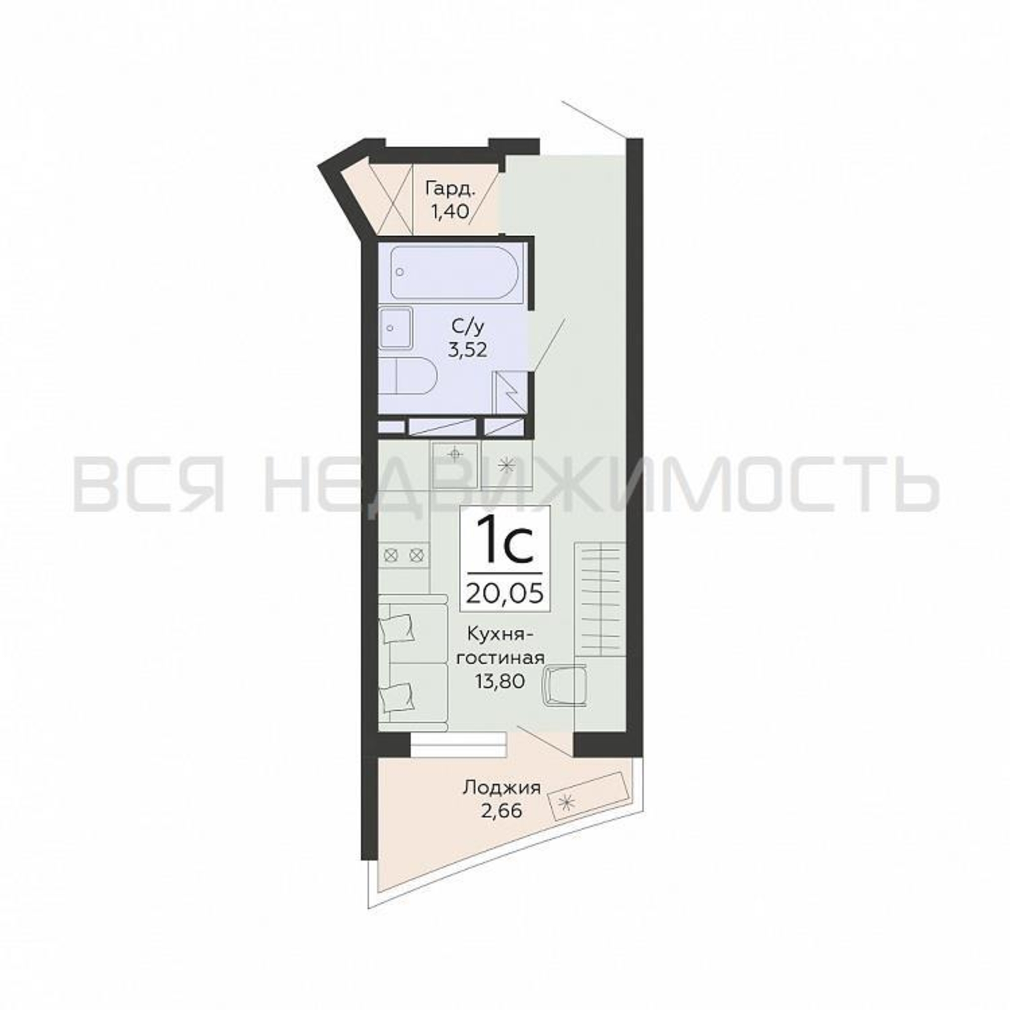 Квартиры-студии, 20.05 м² 9/13 этаж ID объекта 100132332
