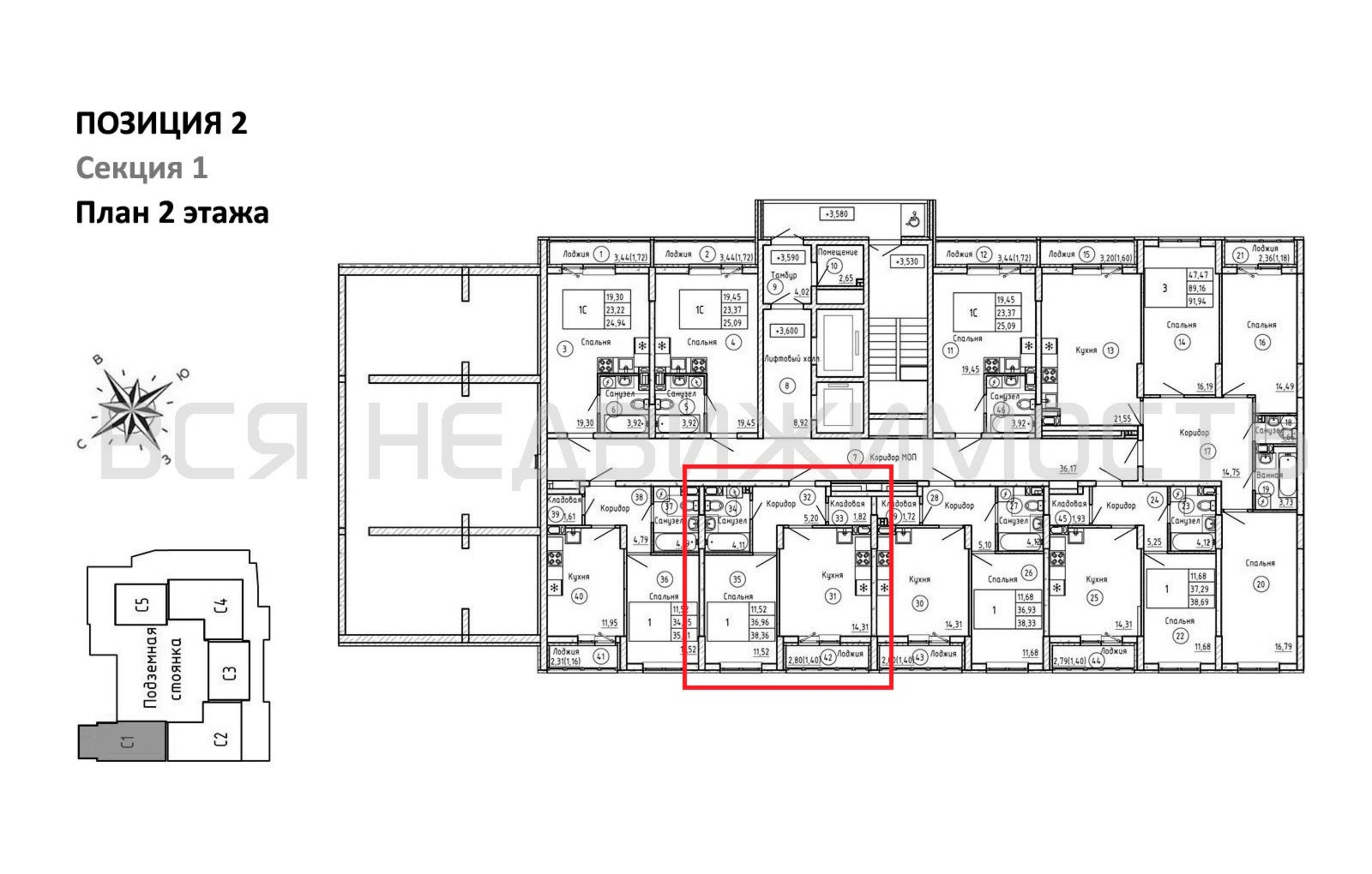 1-комнатная квартира, 38.36 м² 2/18 этаж ID объекта 100133194