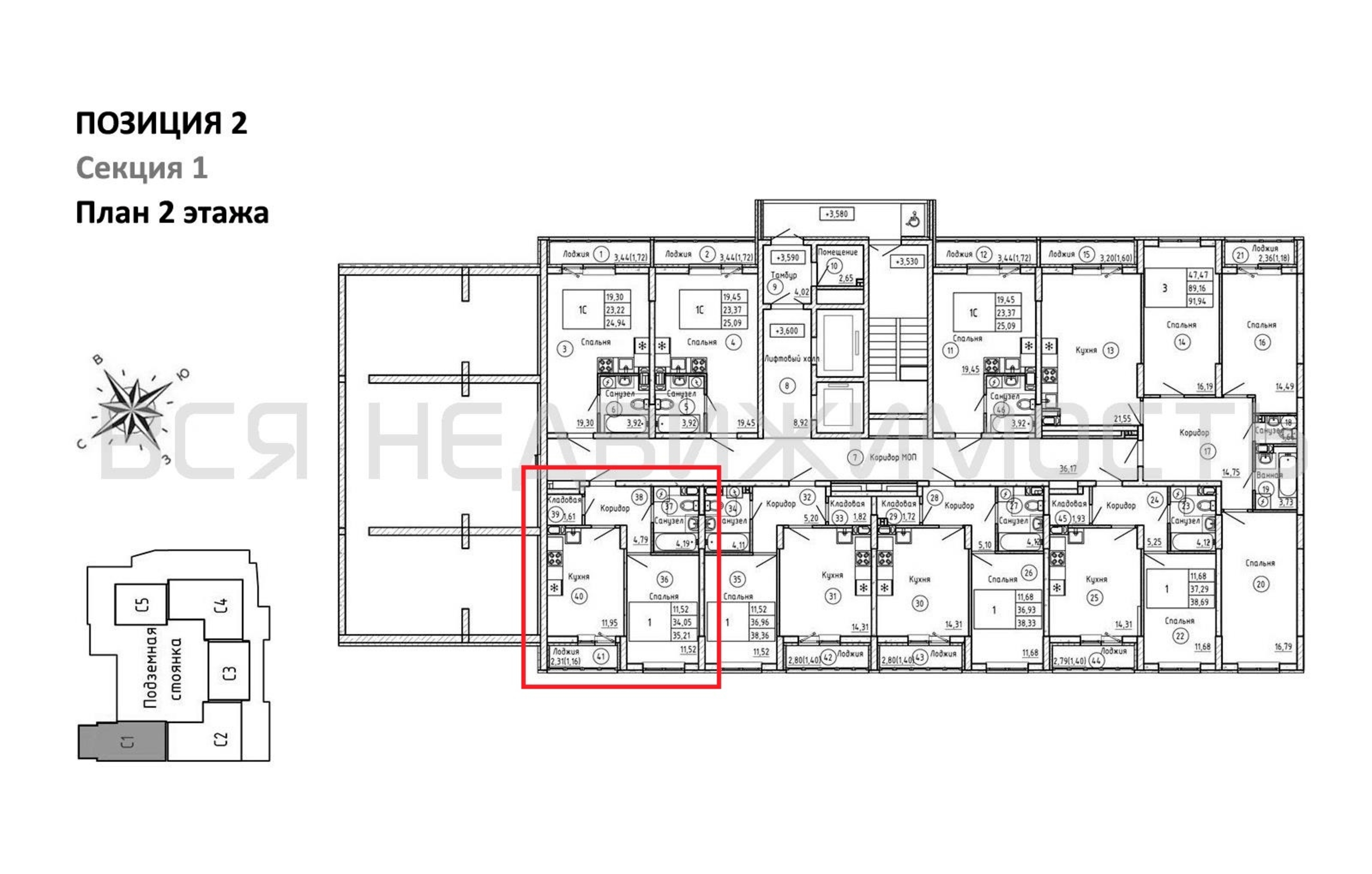 1-комнатная квартира, 35.21 м² 2/18 этаж ID объекта 100133195