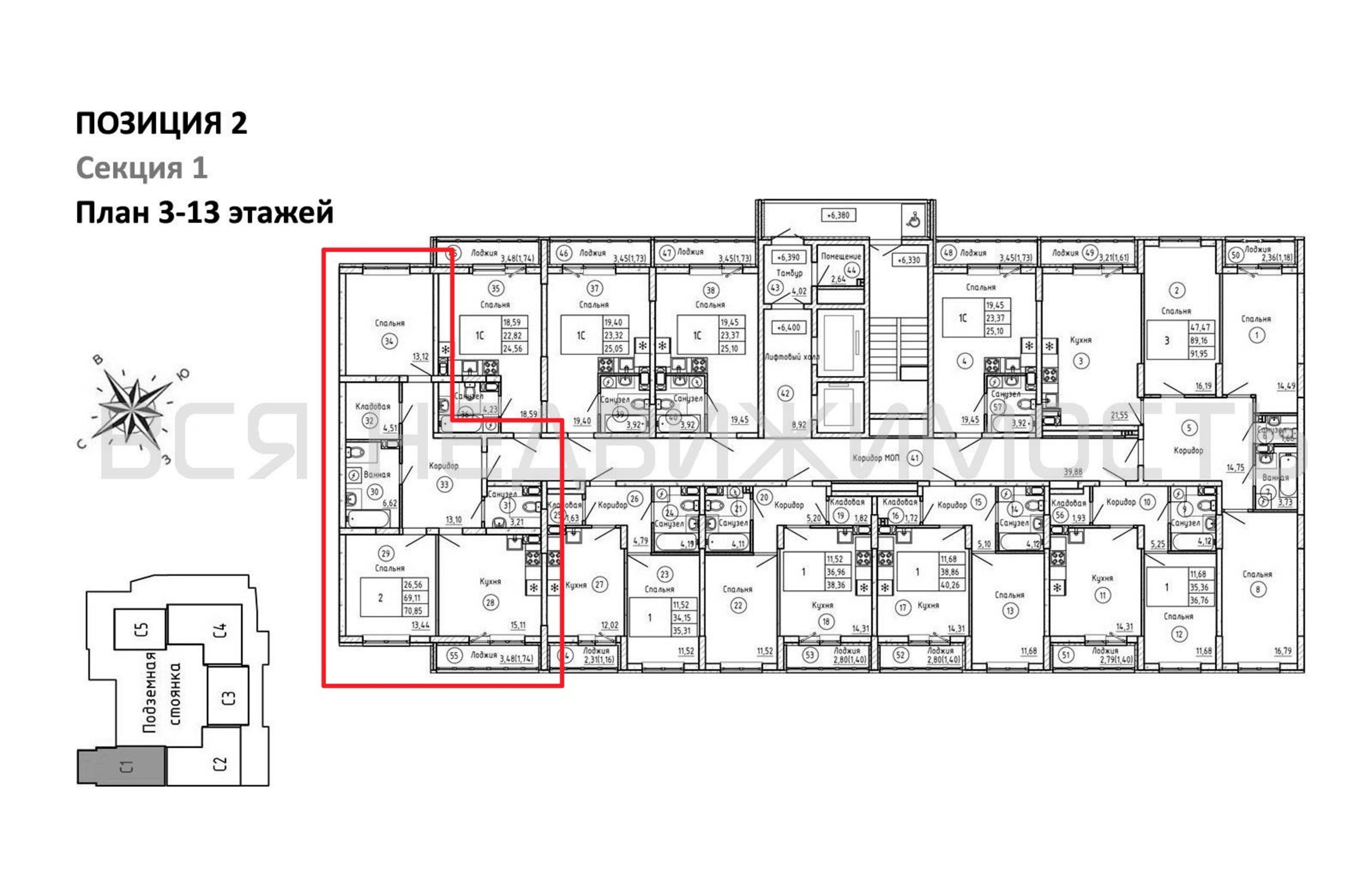 2-комнатная квартира, 70.85 м² 4/18 этаж ID объекта 100133214