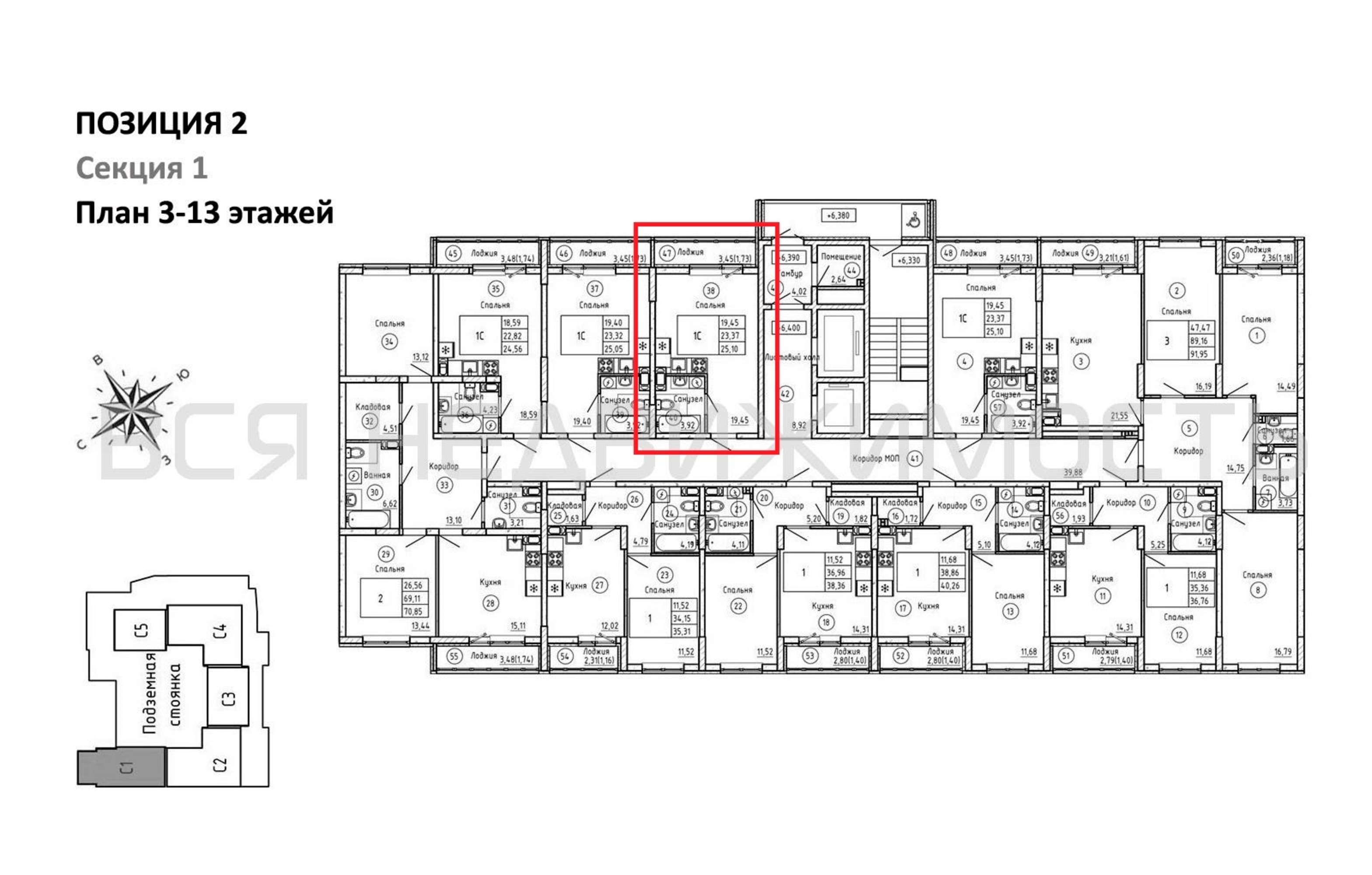 Квартиры-студии, 25.10 м² 6/18 этаж ID объекта 100133237