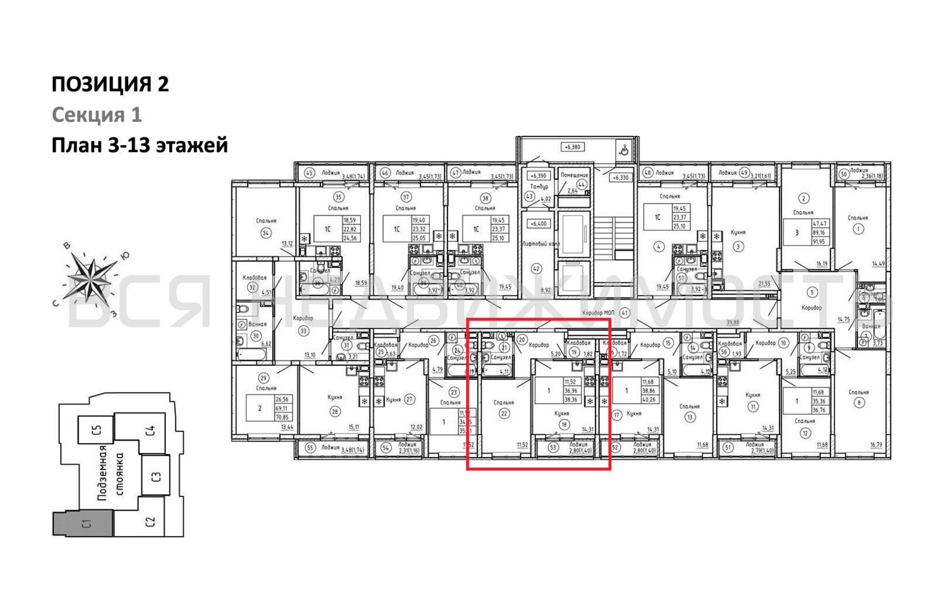 1-комнатная квартира, 38.36 м² 7/18 этаж ID объекта 100133242