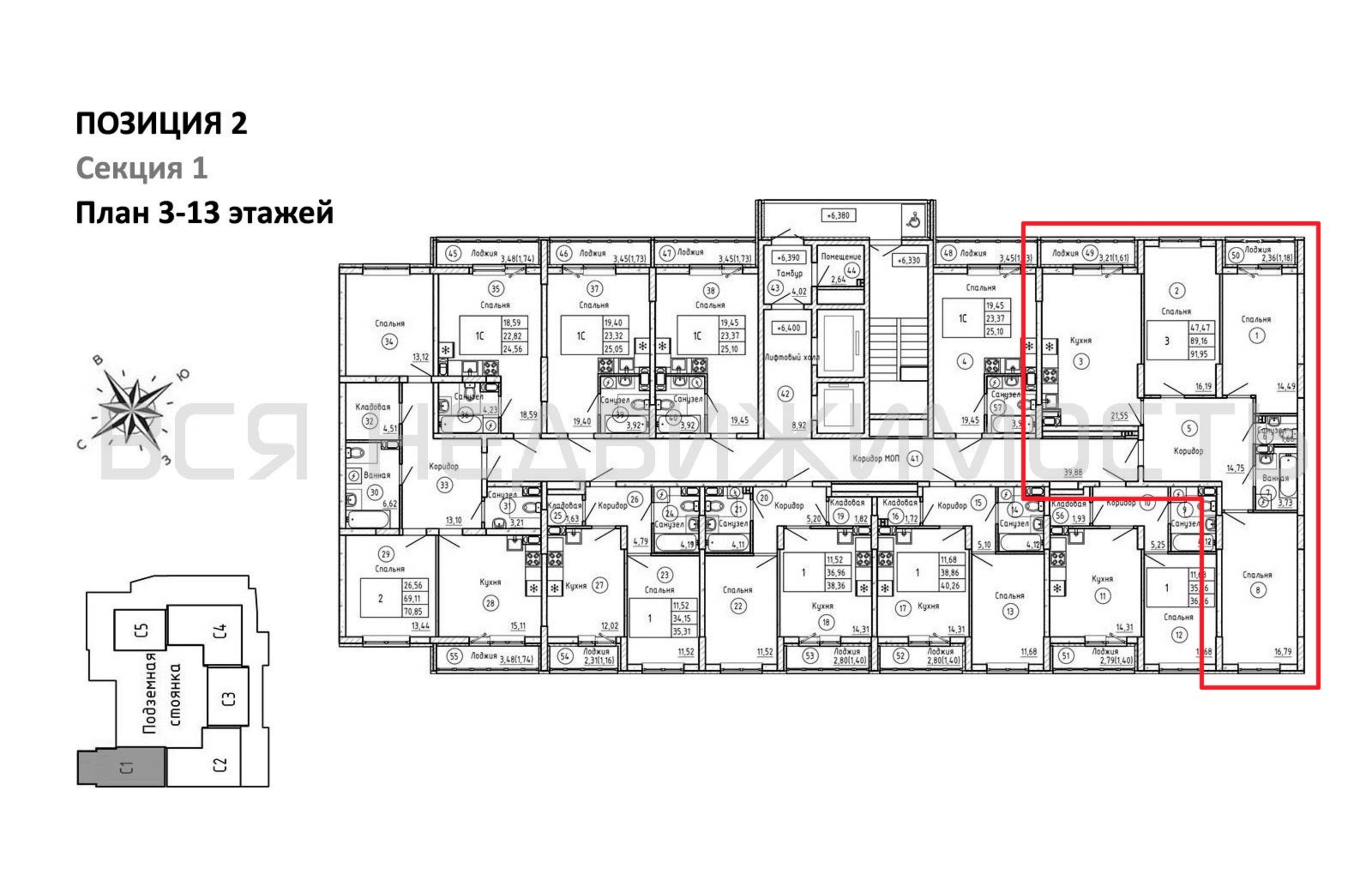 3-комнатная квартира, 91.95 м² 8/18 этаж ID объекта 100133249