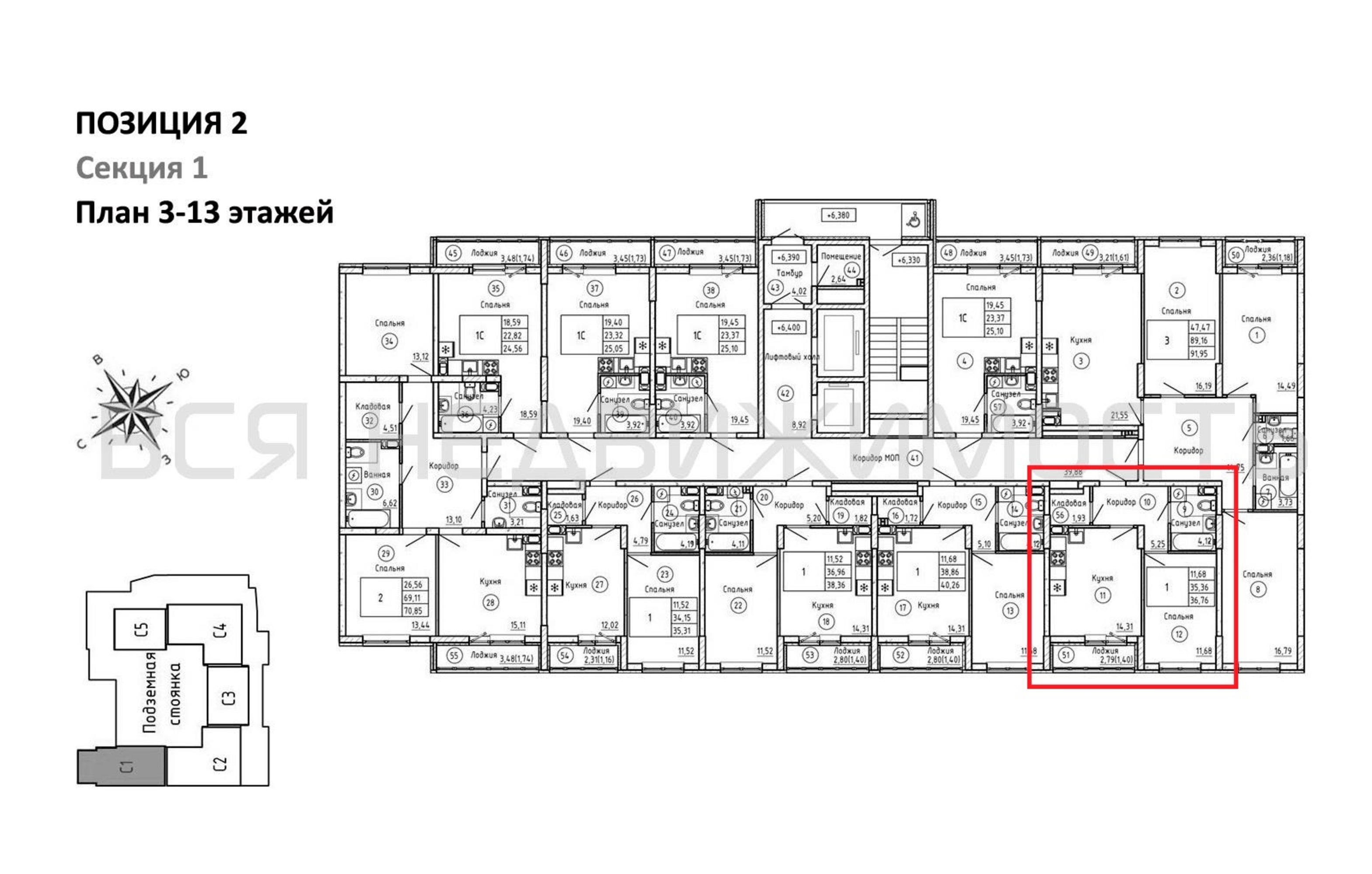 1-комнатная квартира, 36.76 м² 8/18 этаж ID объекта 100133250