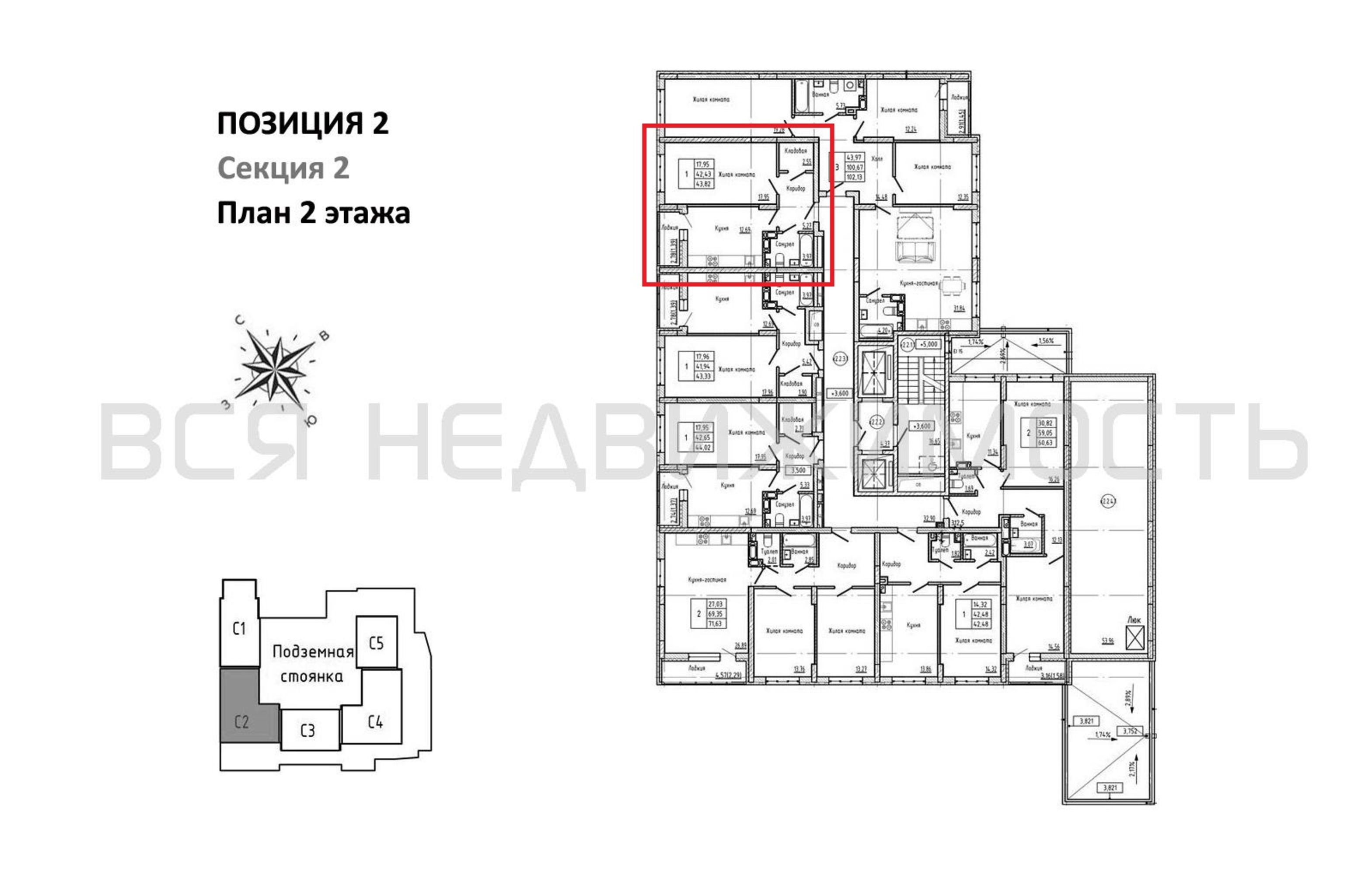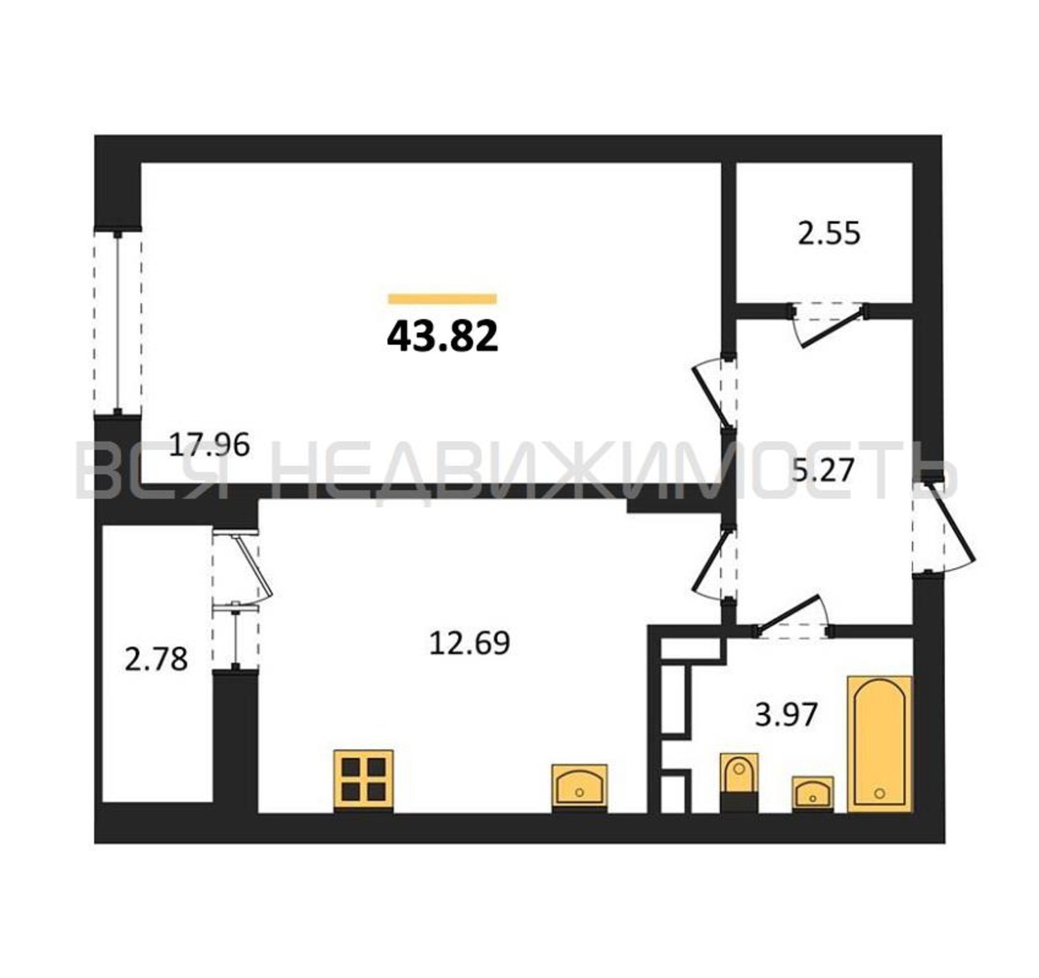 1-комнатная квартира, 43.82 м² 2/18 этаж ID объекта 100133313