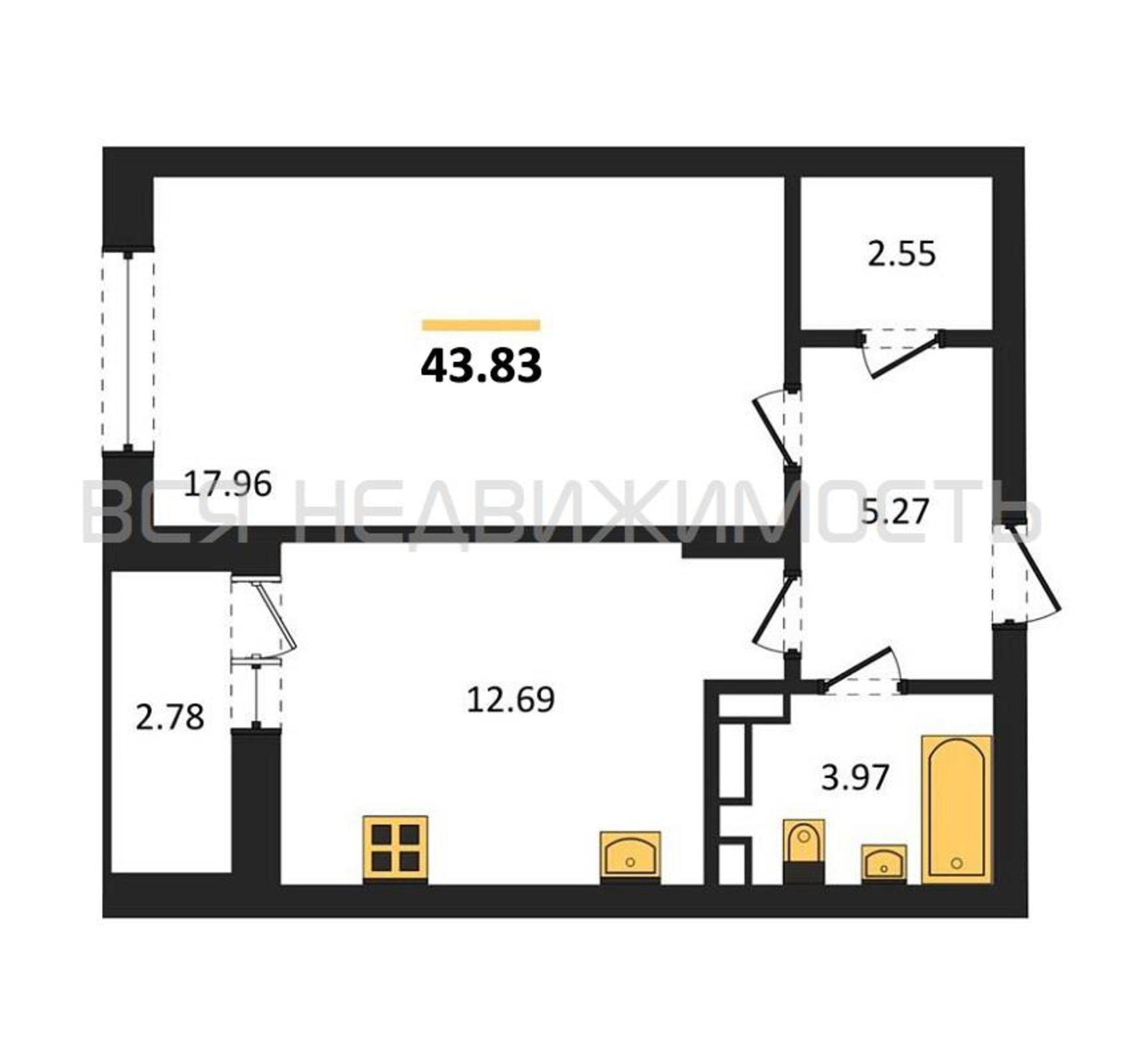Строительная площадь43.83 м²