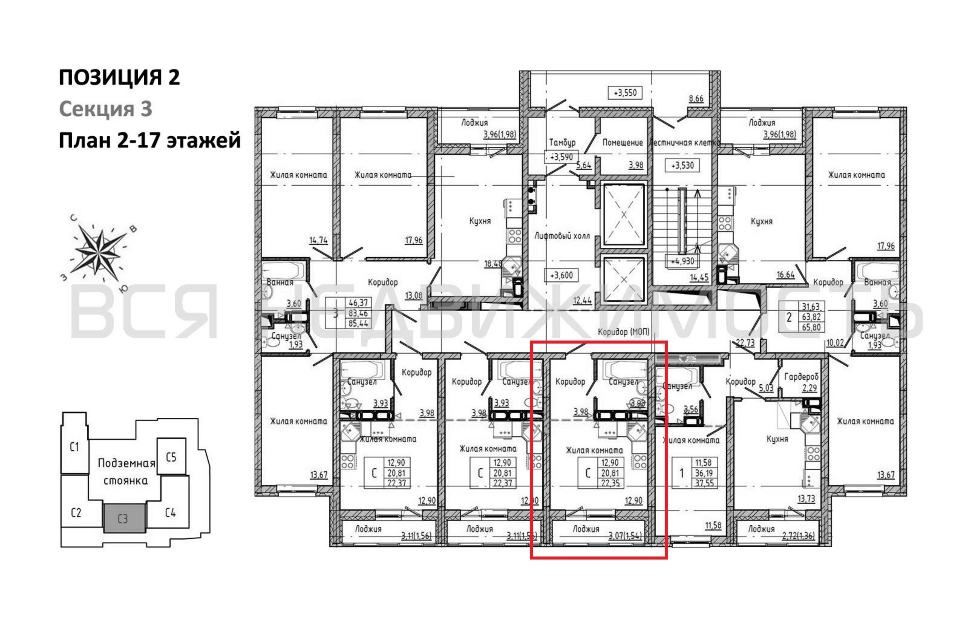Квартиры-студии, 22.35 м² 10/18 этаж ID объекта 100133470
