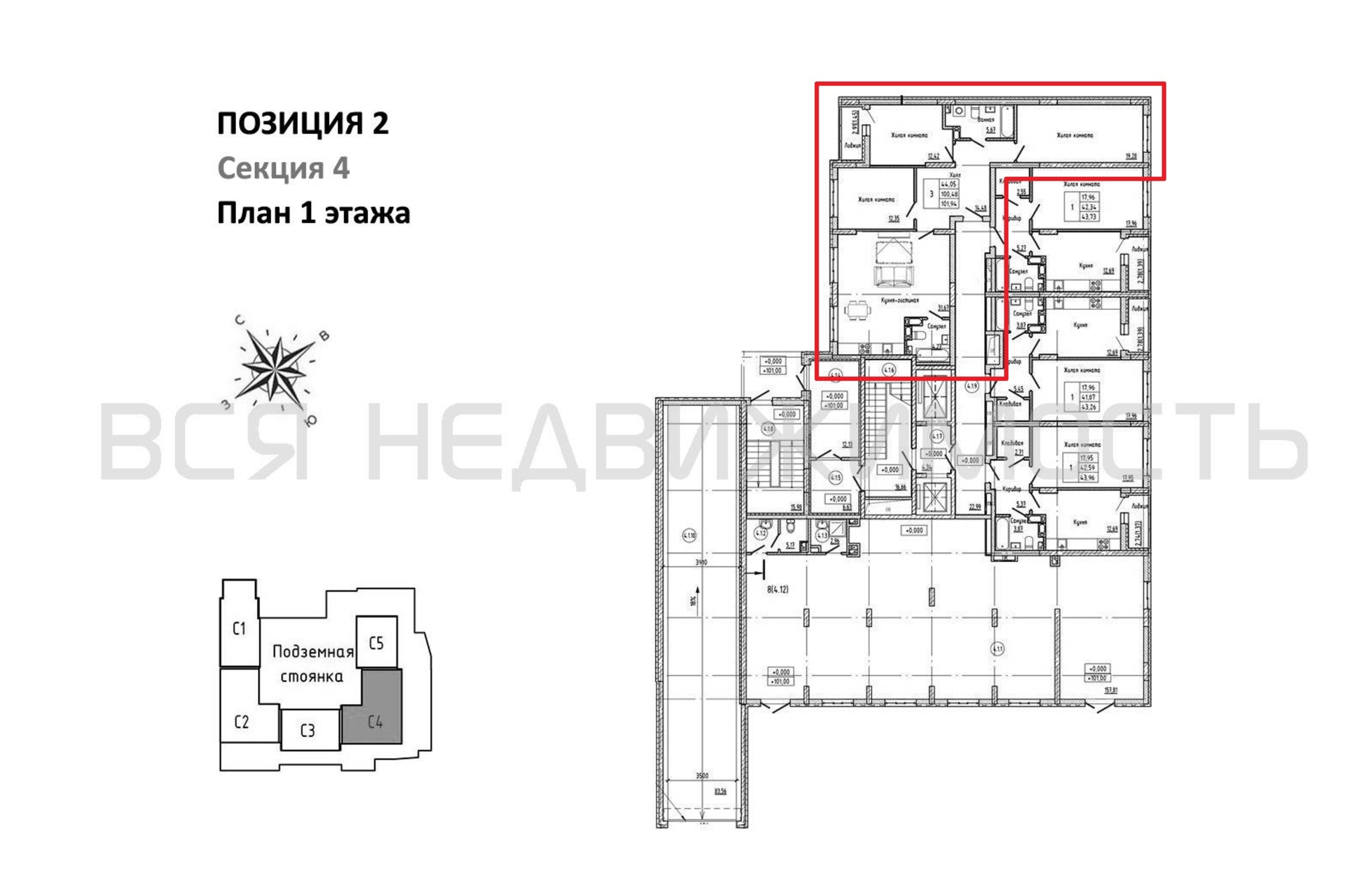 3-комнатная квартира, 101.94 м² 1/18 этаж ID объекта 100133516