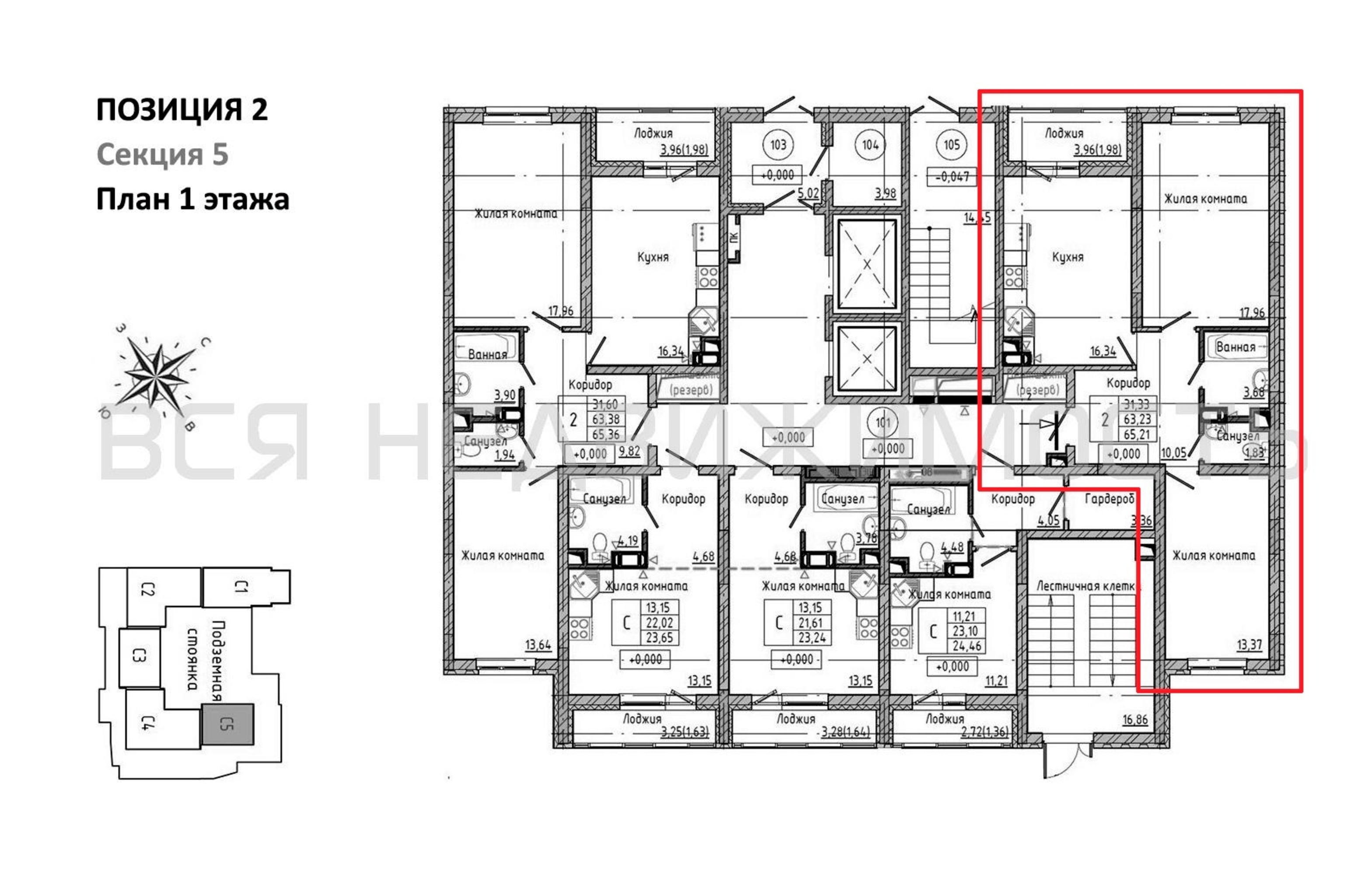 2-комнатная квартира, 65.21 м² 1/18 этаж ID объекта 100133632