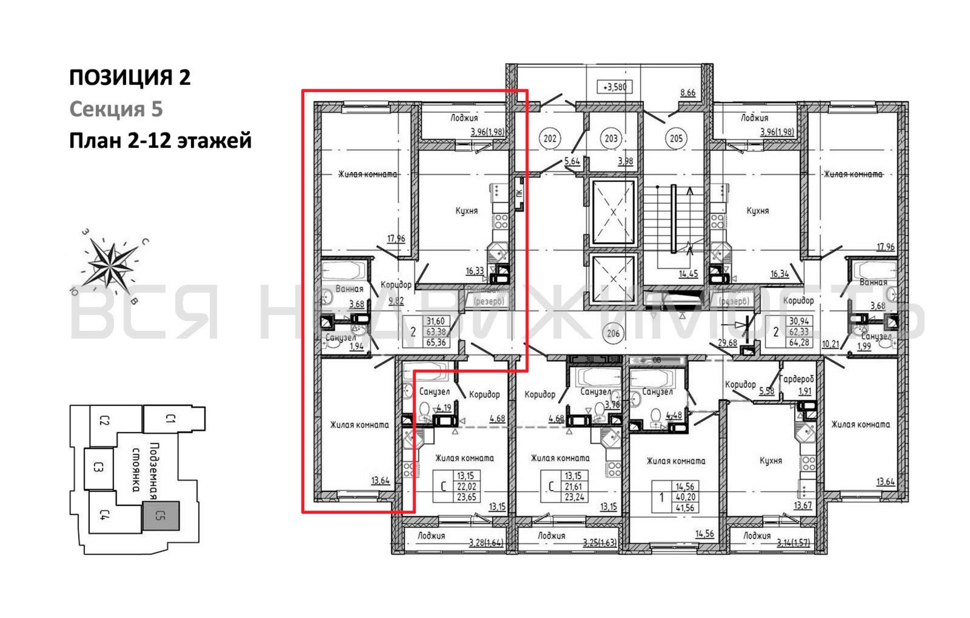 2-комнатная квартира, 65.36 м² 3/18 этаж ID объекта 100133646