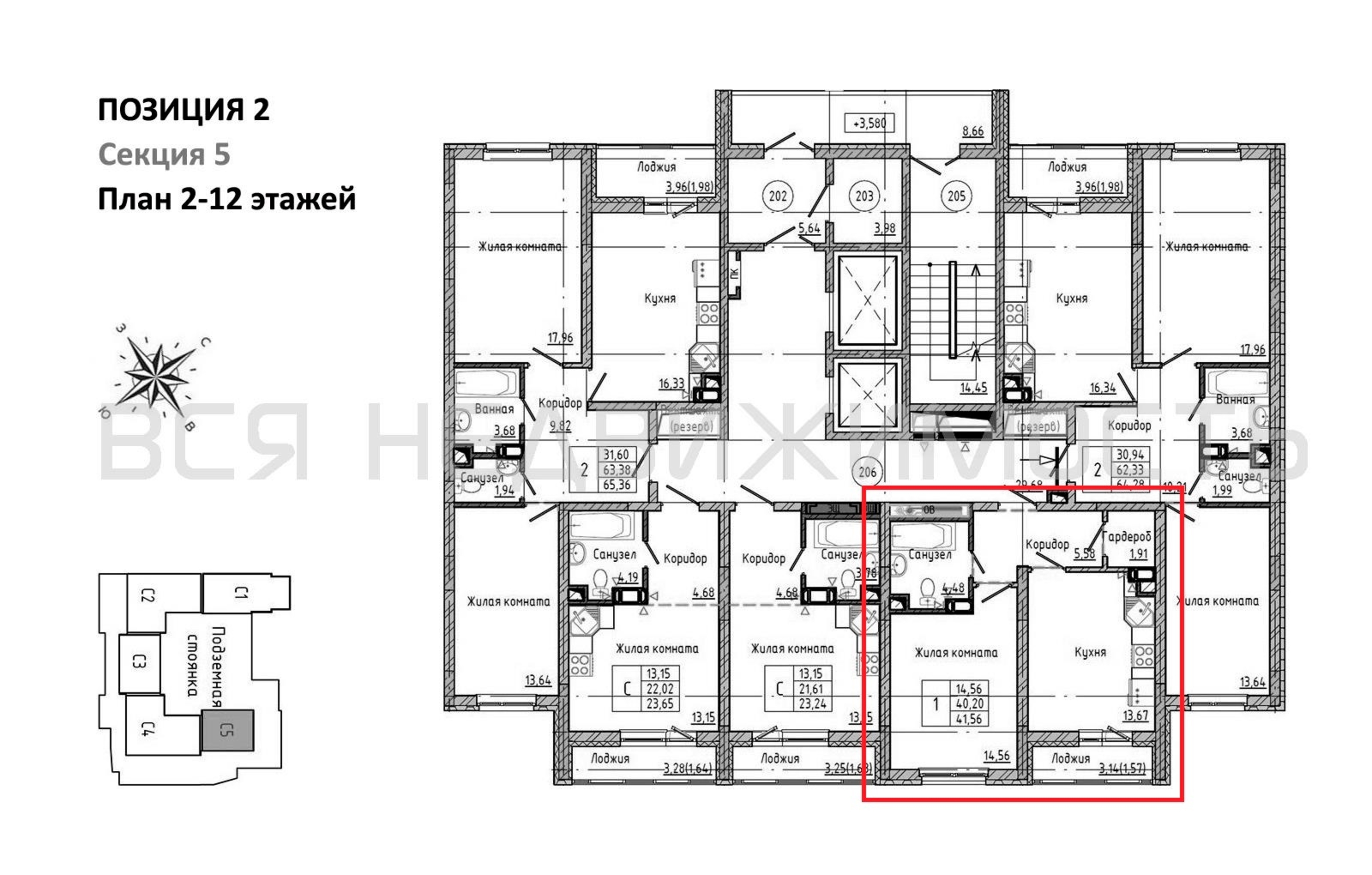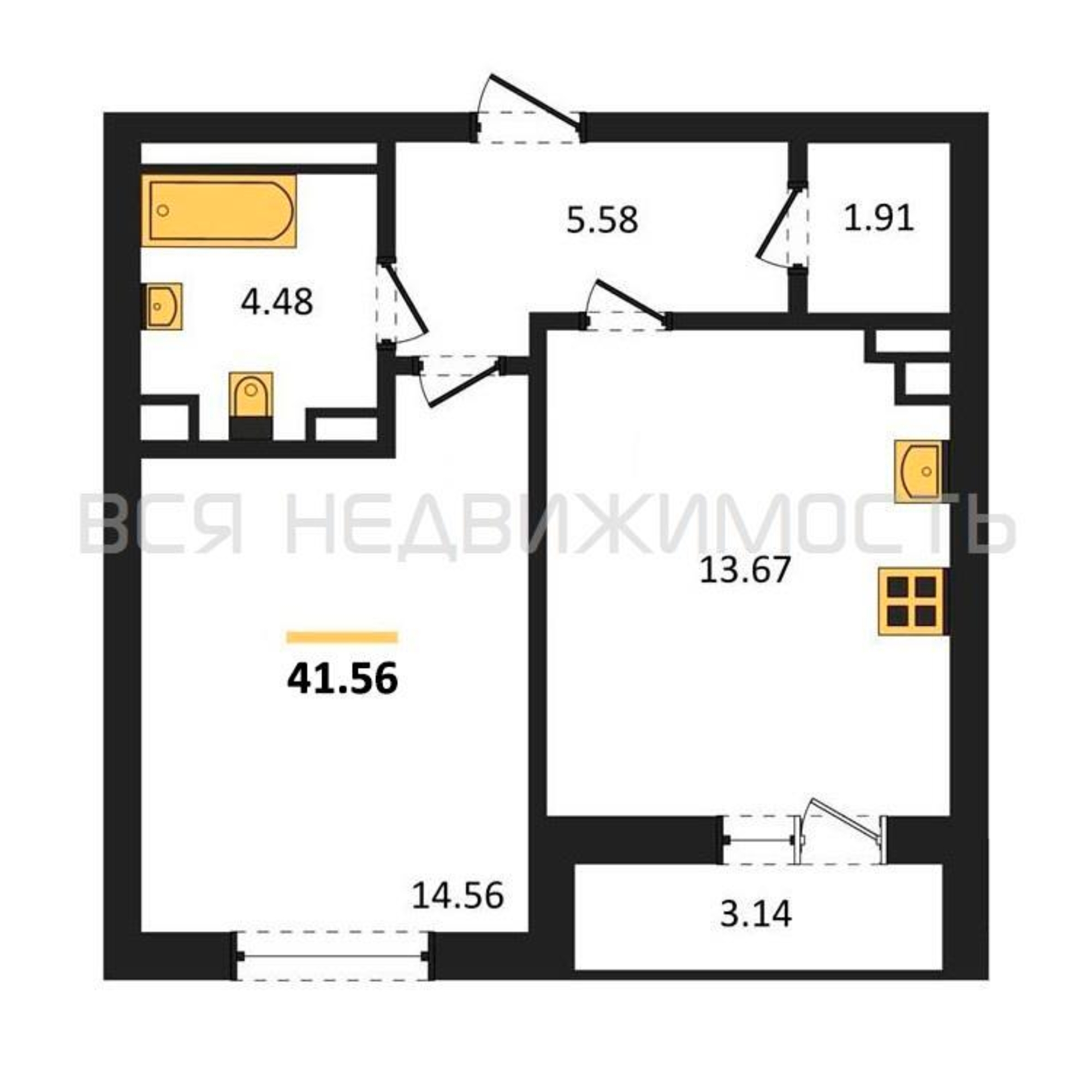 1-комнатная квартира, 41.56 м² 8/18 этаж ID объекта 100133668
