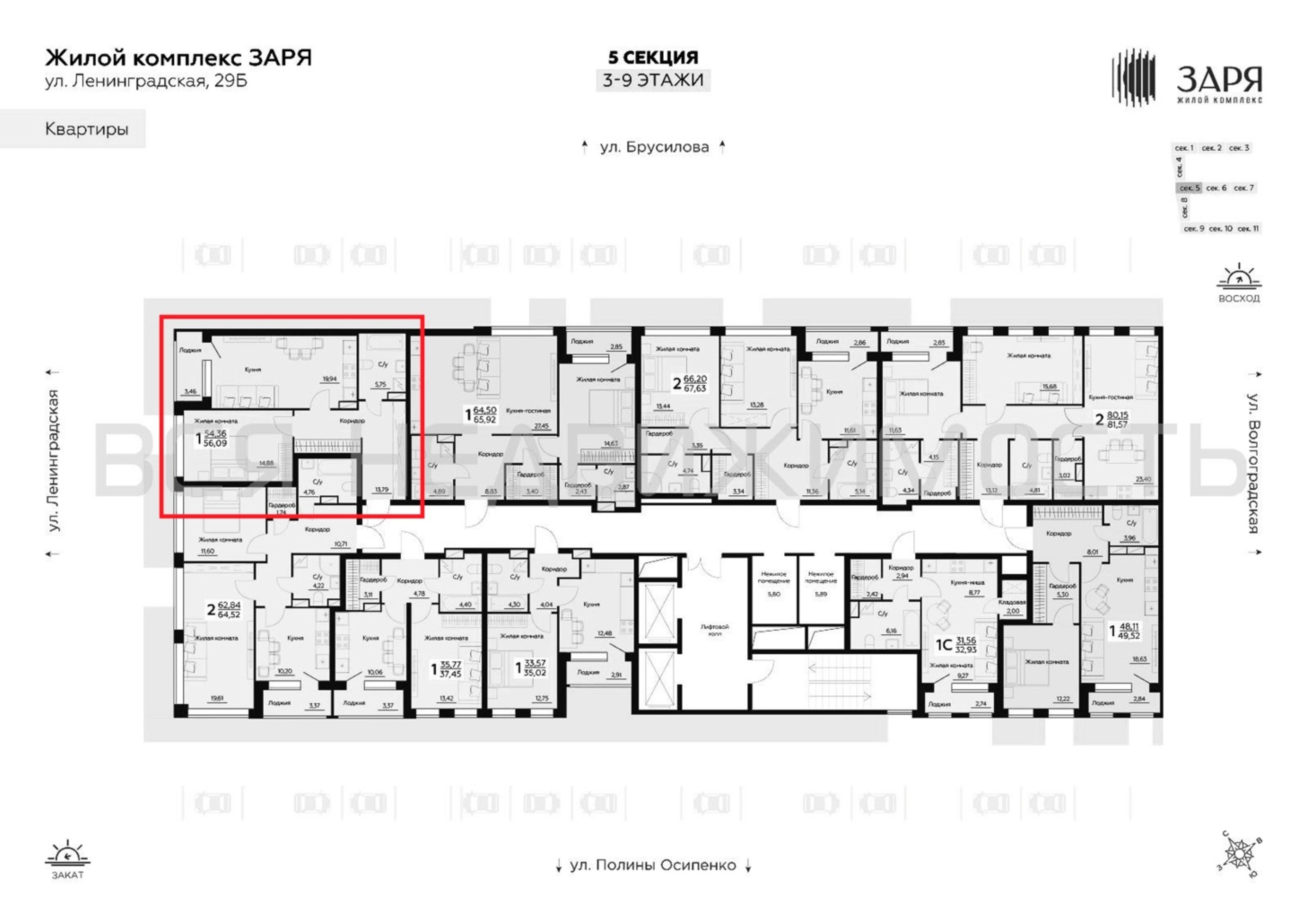 1-комнатная квартира, 56.09 м² 4/16 этаж ID объекта 100133723