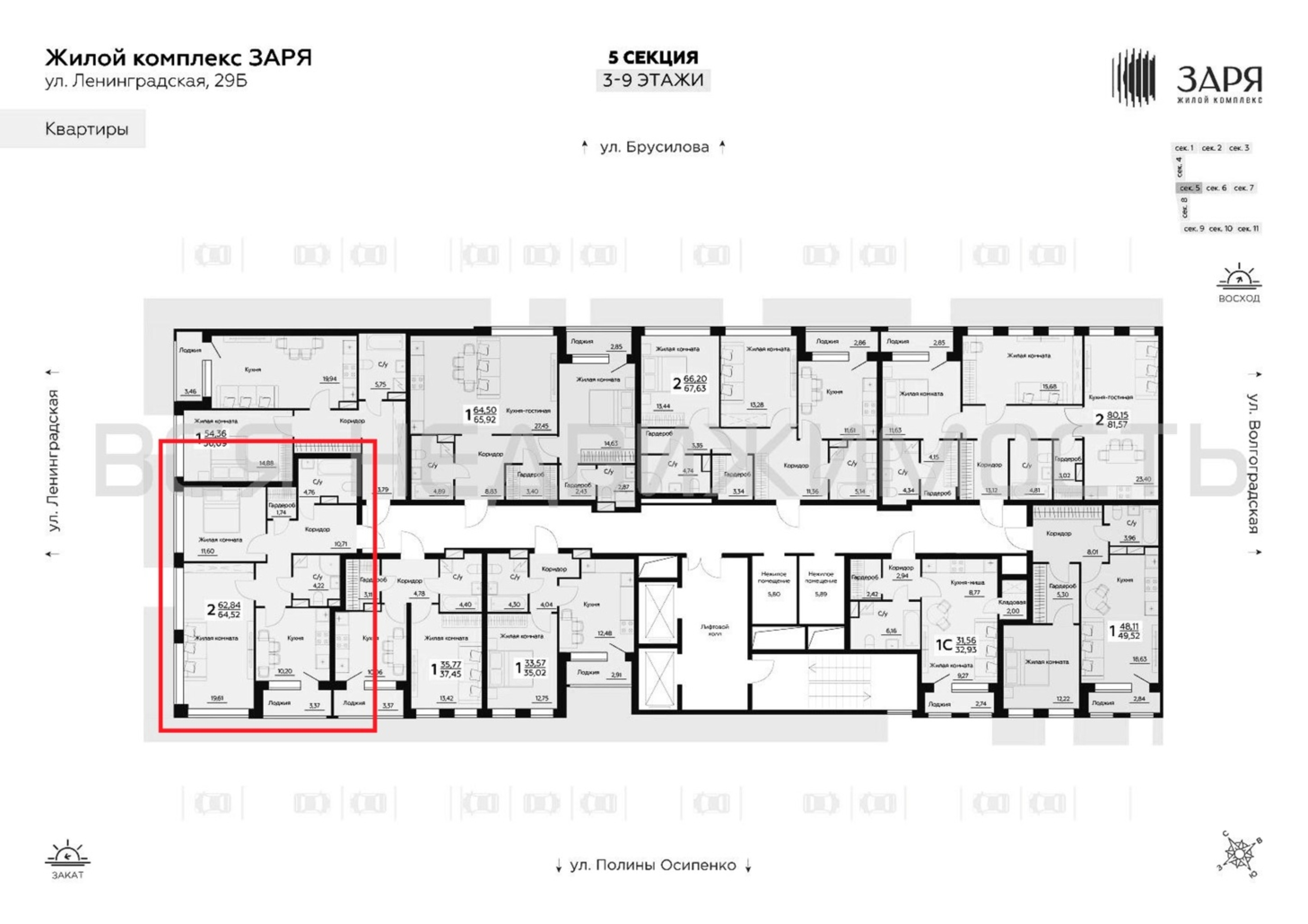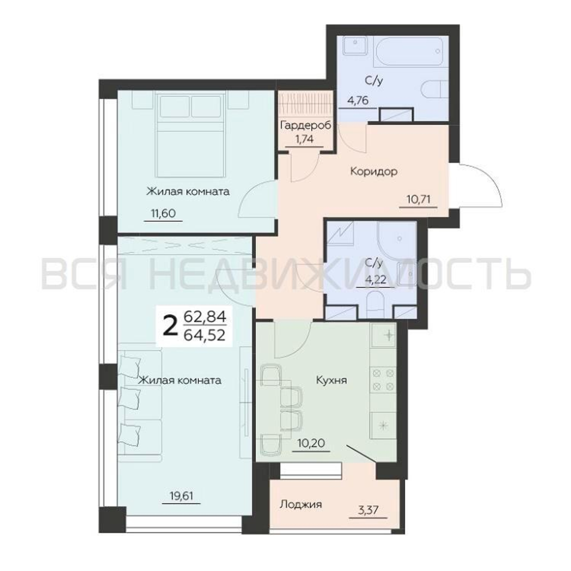 2-комнатная квартира, 64.52 м² 5/16 этаж ID объекта 100133731