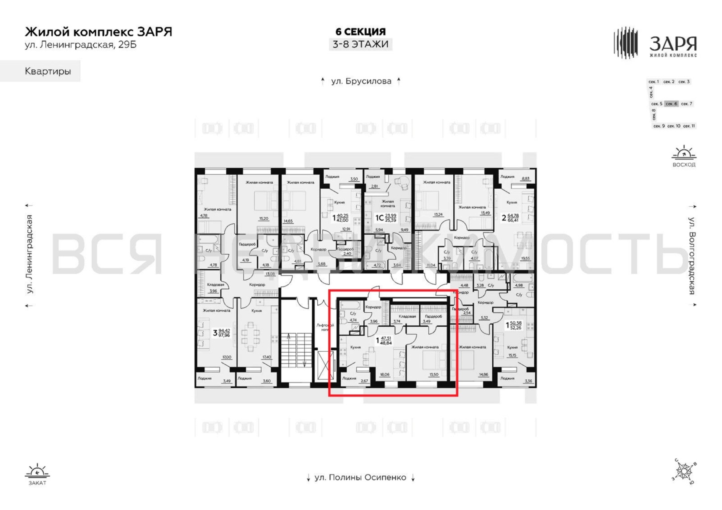 1-комнатная квартира, 48.84 м² 3/16 этаж ID объекта 100133842