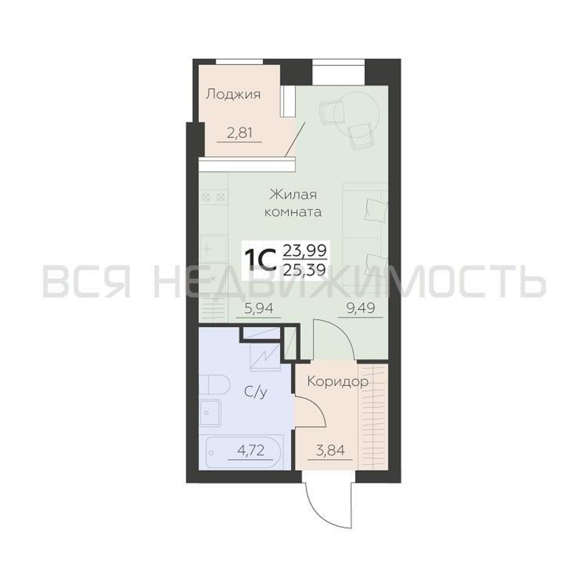 Общая площадь23.99 м²