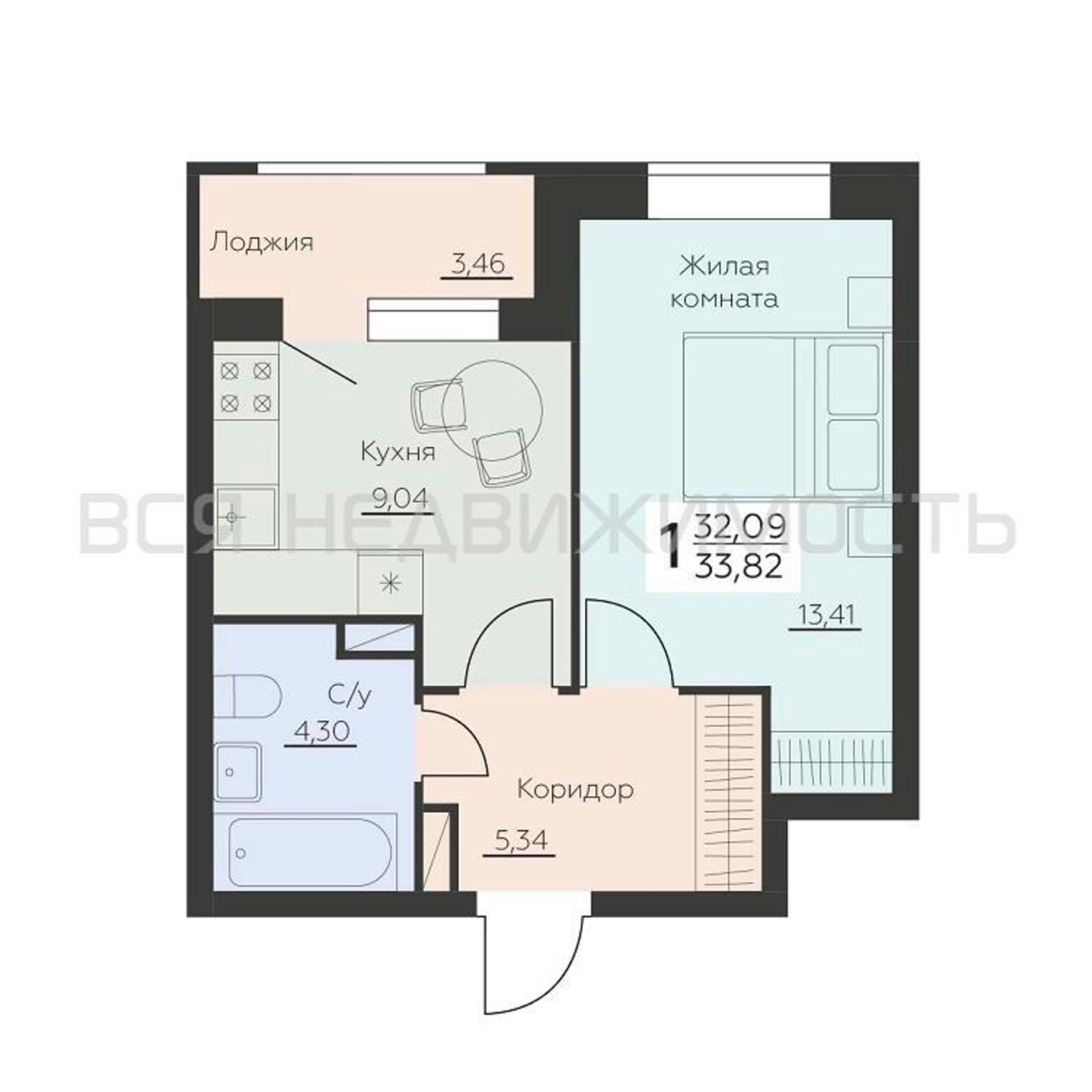 1-комнатная квартира, 33.82 м² 4/14 этаж ID объекта 100133907