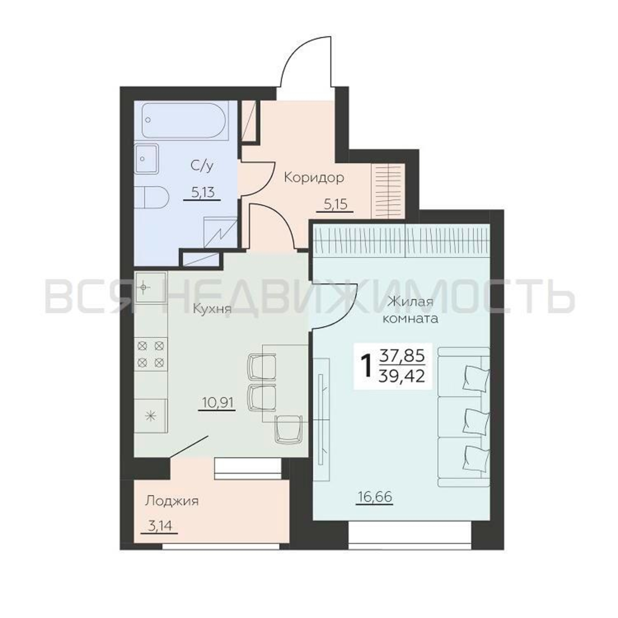 Строительная площадь39.42 м²