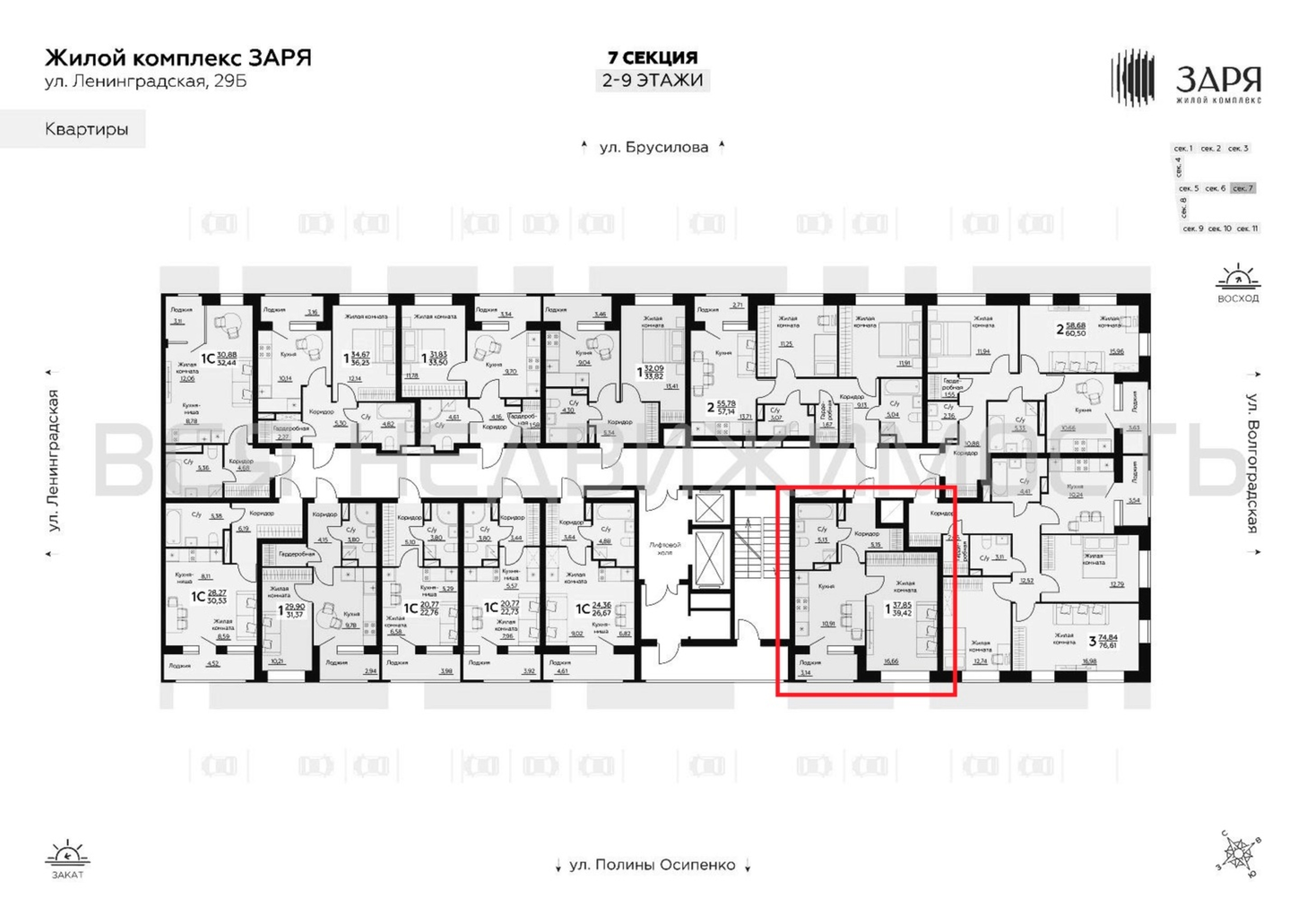 1-комнатная квартира, 39.42 м² 7/14 этаж ID объекта 100133950