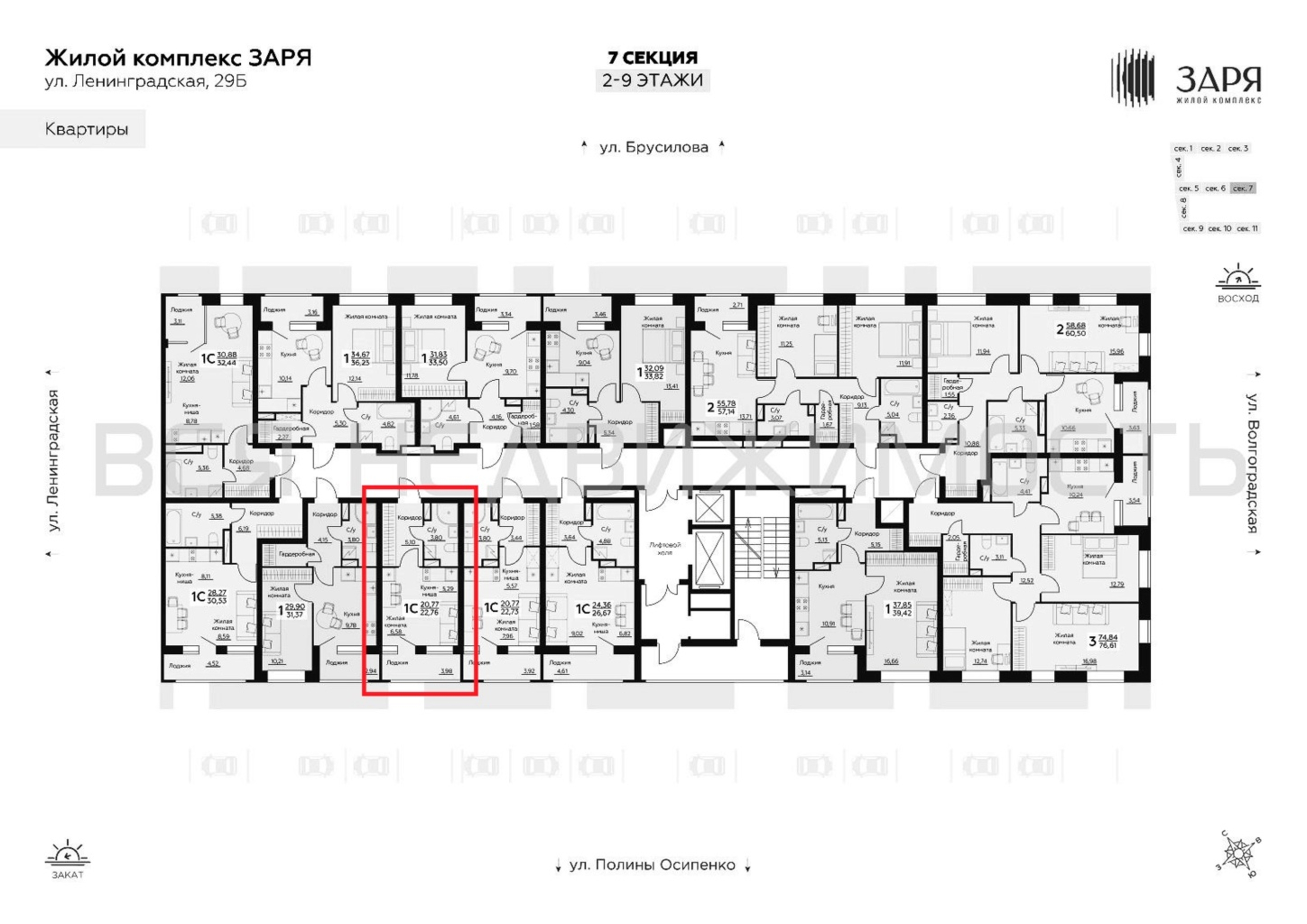 Квартиры-студии, 22.76 м² 9/14 этаж ID объекта 100133966