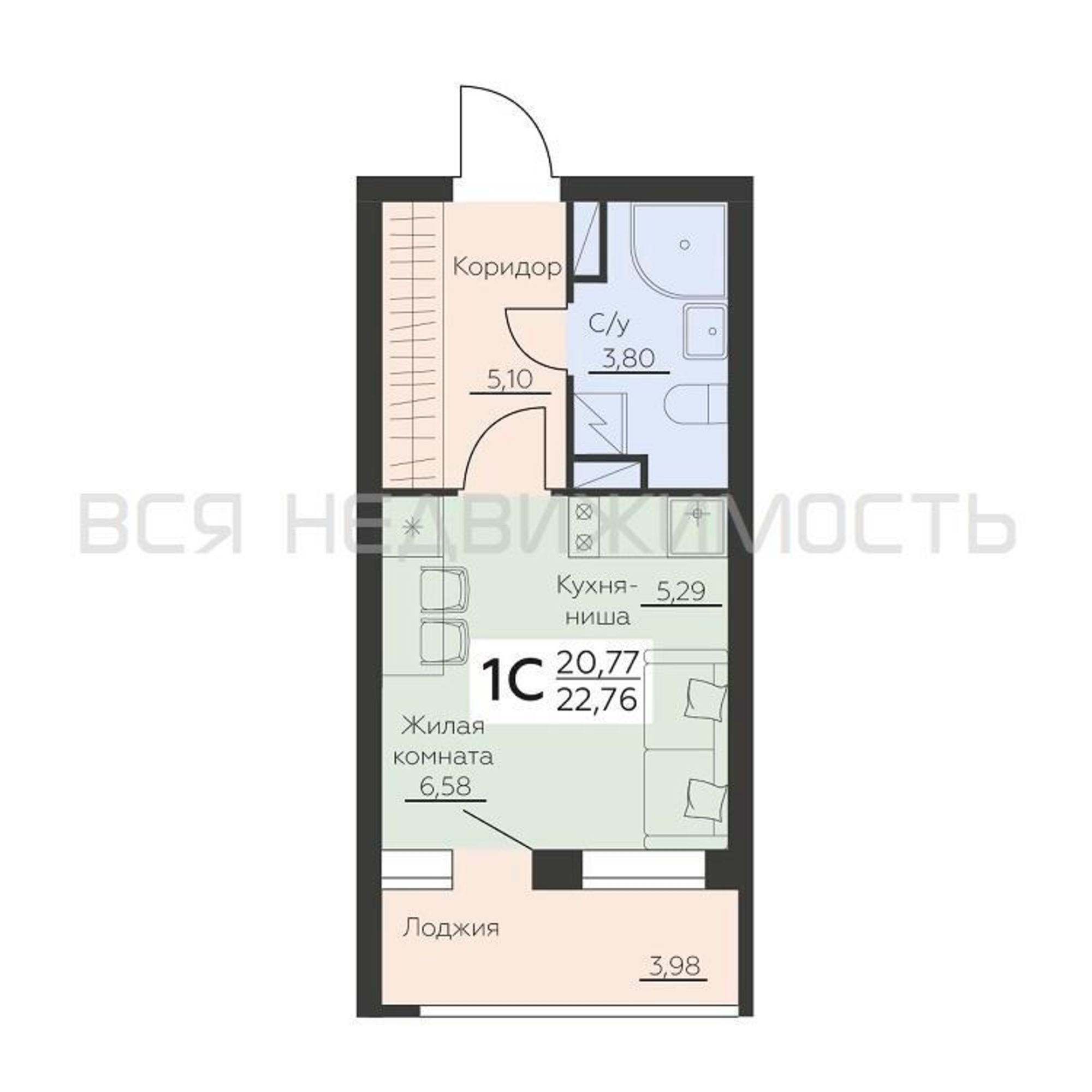 Строительная площадь22.76 м²