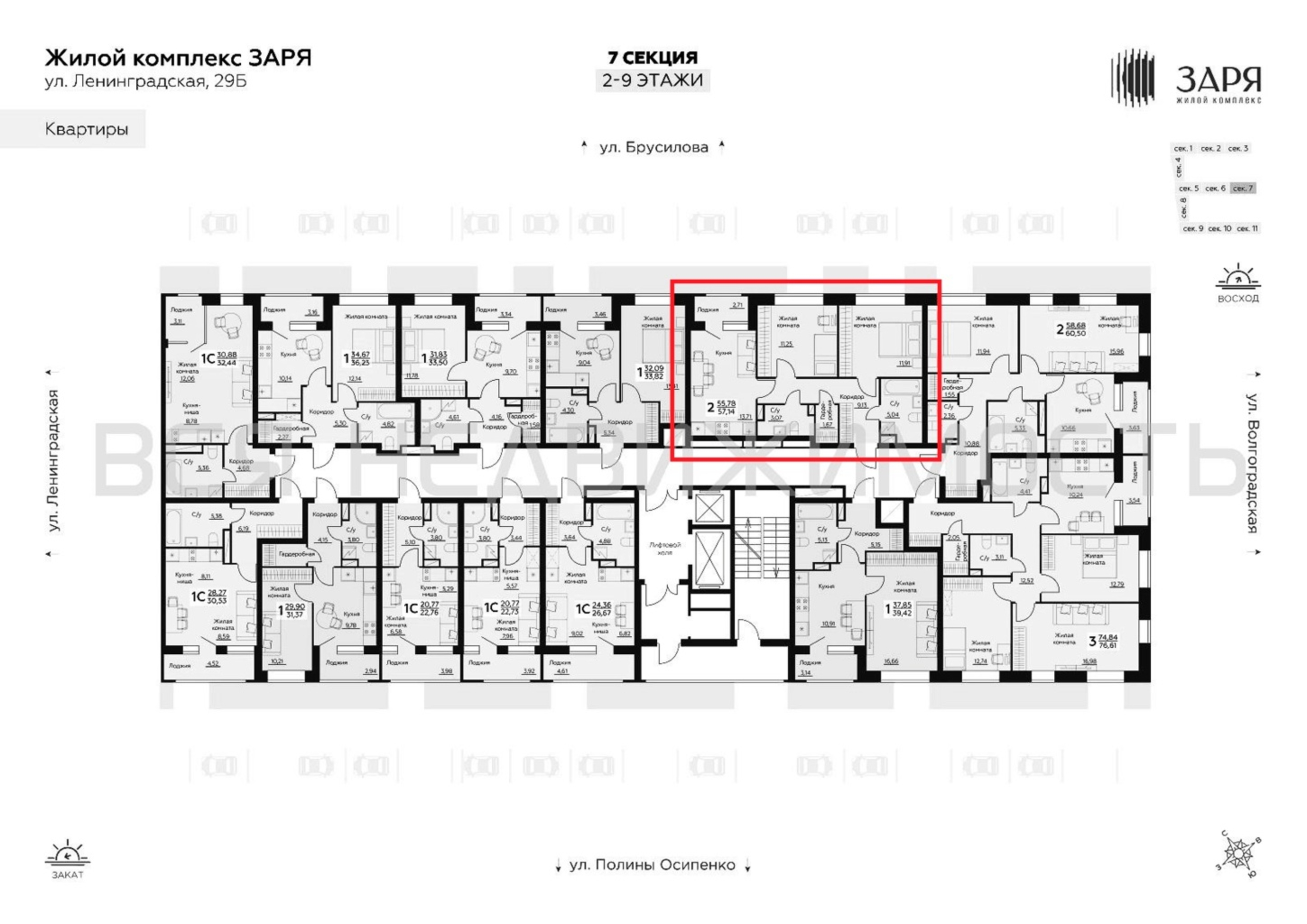 2-комнатная квартира, 57.14 м² 9/14 этаж ID объекта 100133973