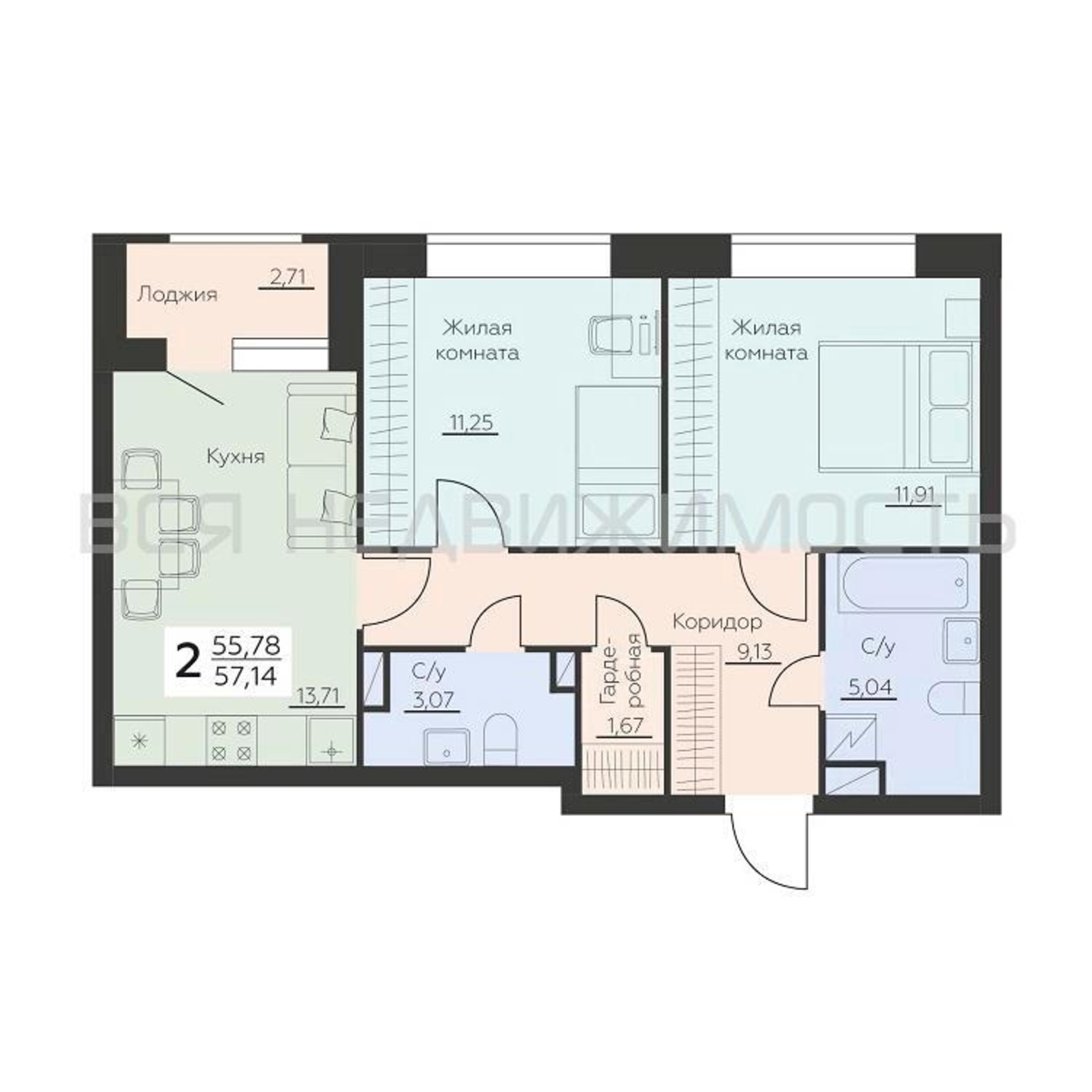 Общая площадь55.78 м²