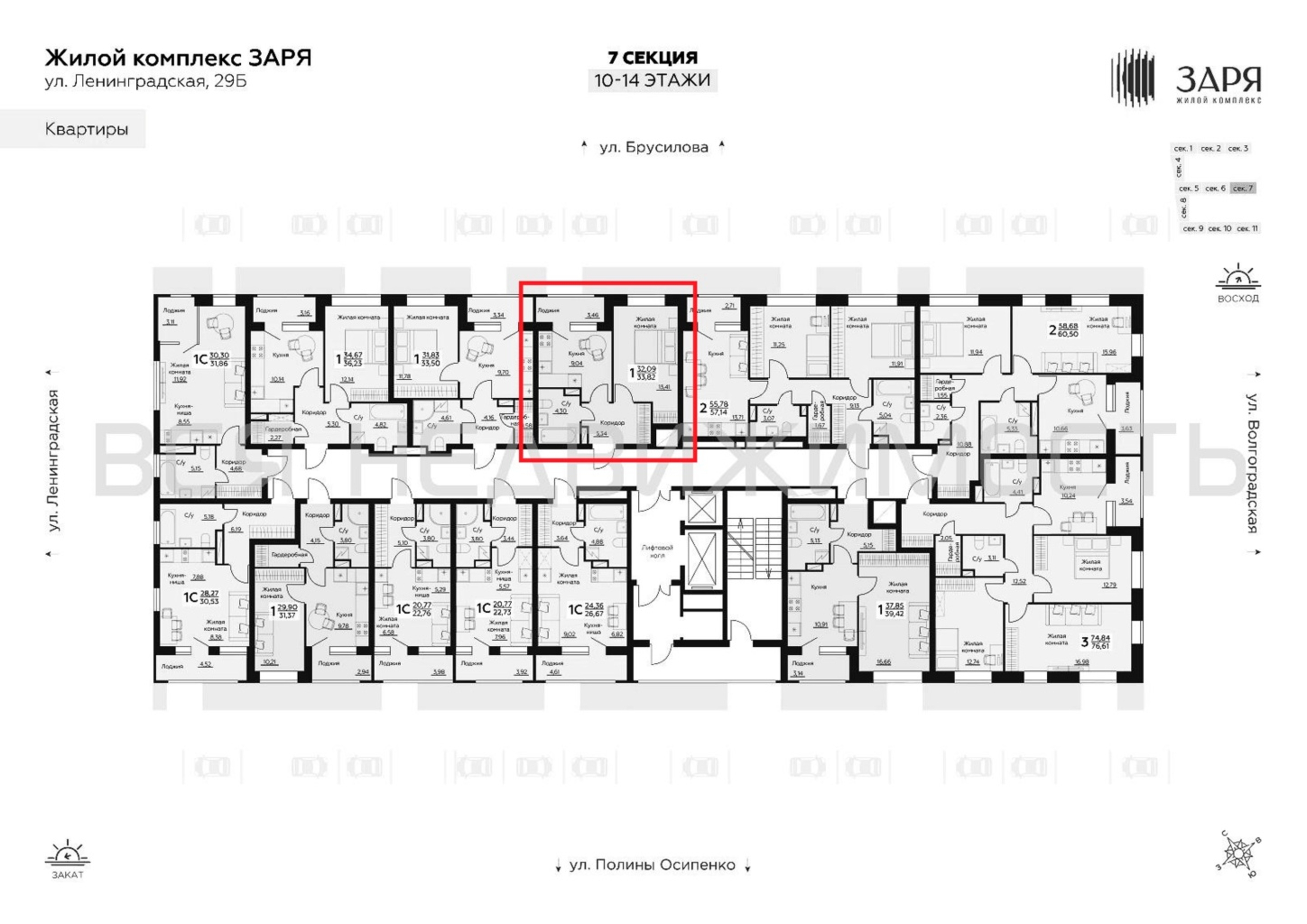 1-комнатная квартира, 33.82 м² 10/16 этаж ID объекта 100133985
