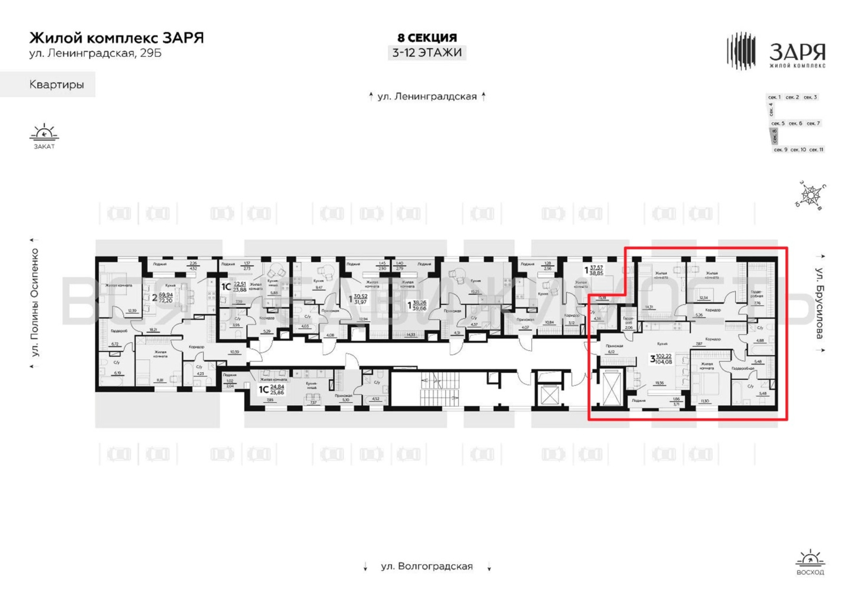 3-комнатная квартира, 104.08 м² 4/16 этаж ID объекта 100134055
