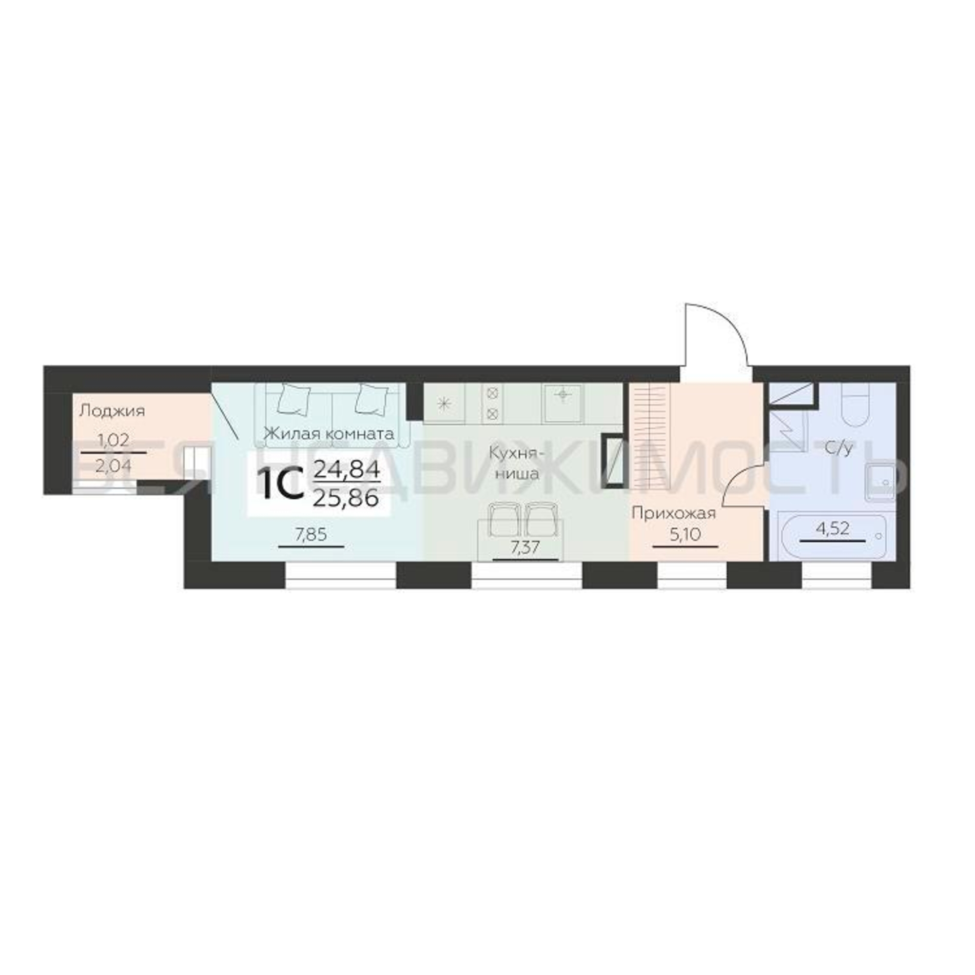 Общая площадь24.84 м²