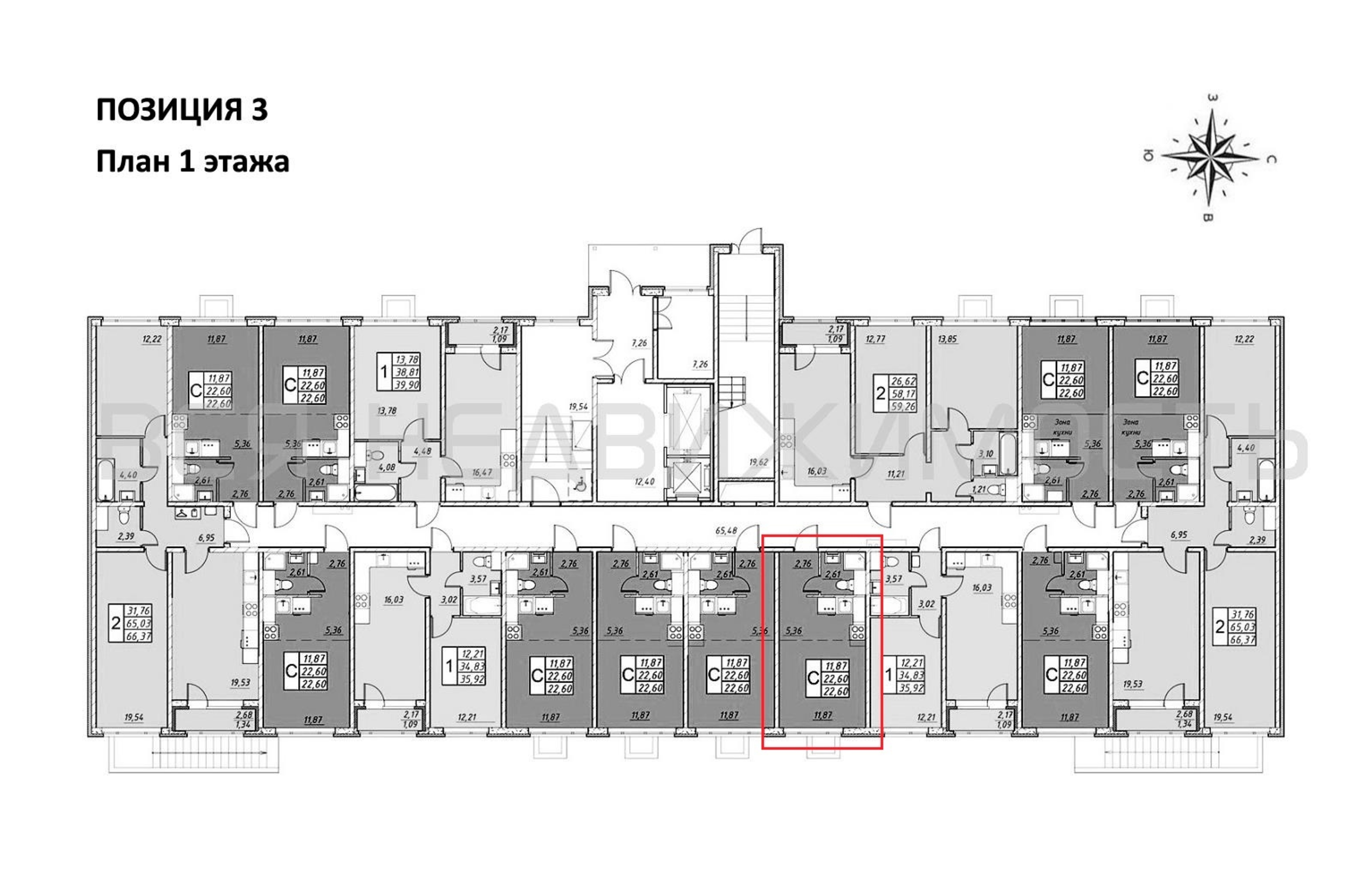 Квартиры-студии, 22.60 м² 1/15 этаж ID объекта 100134271