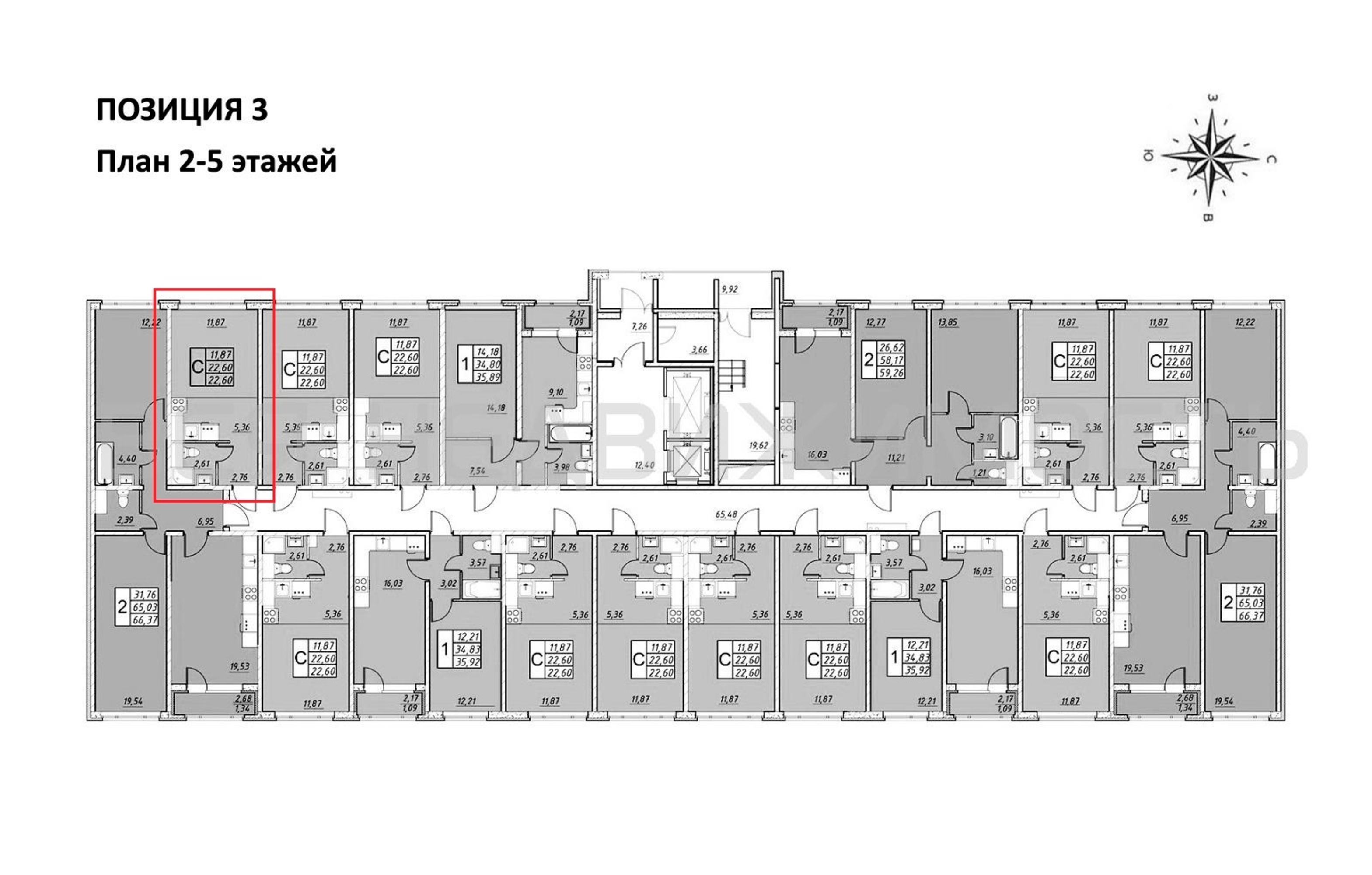 Квартиры-студии, 22.60 м² 4/15 этаж ID объекта 100134354