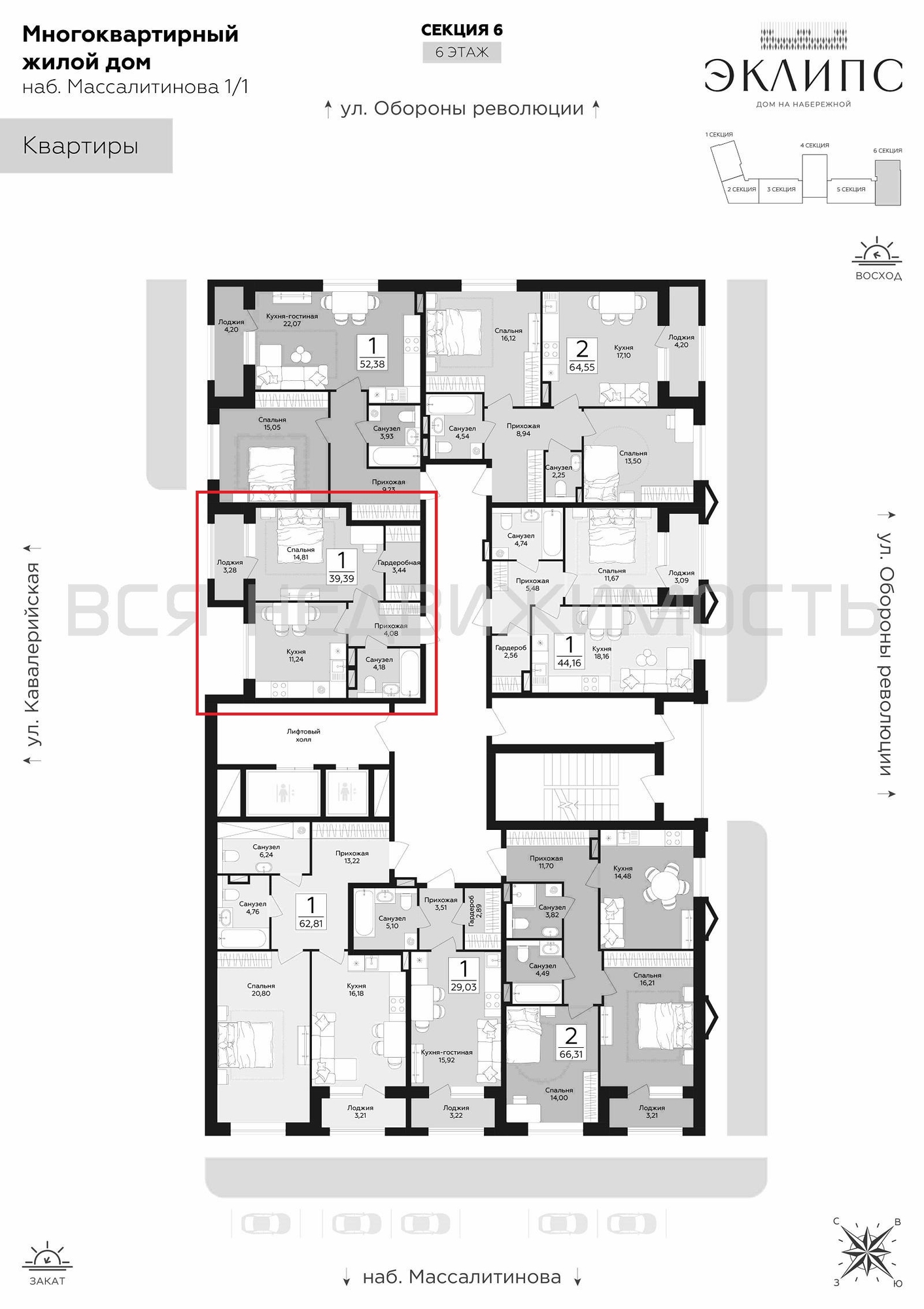 1-комнатная квартира, 39.39 м² 6/12 этаж ID объекта 100134563
