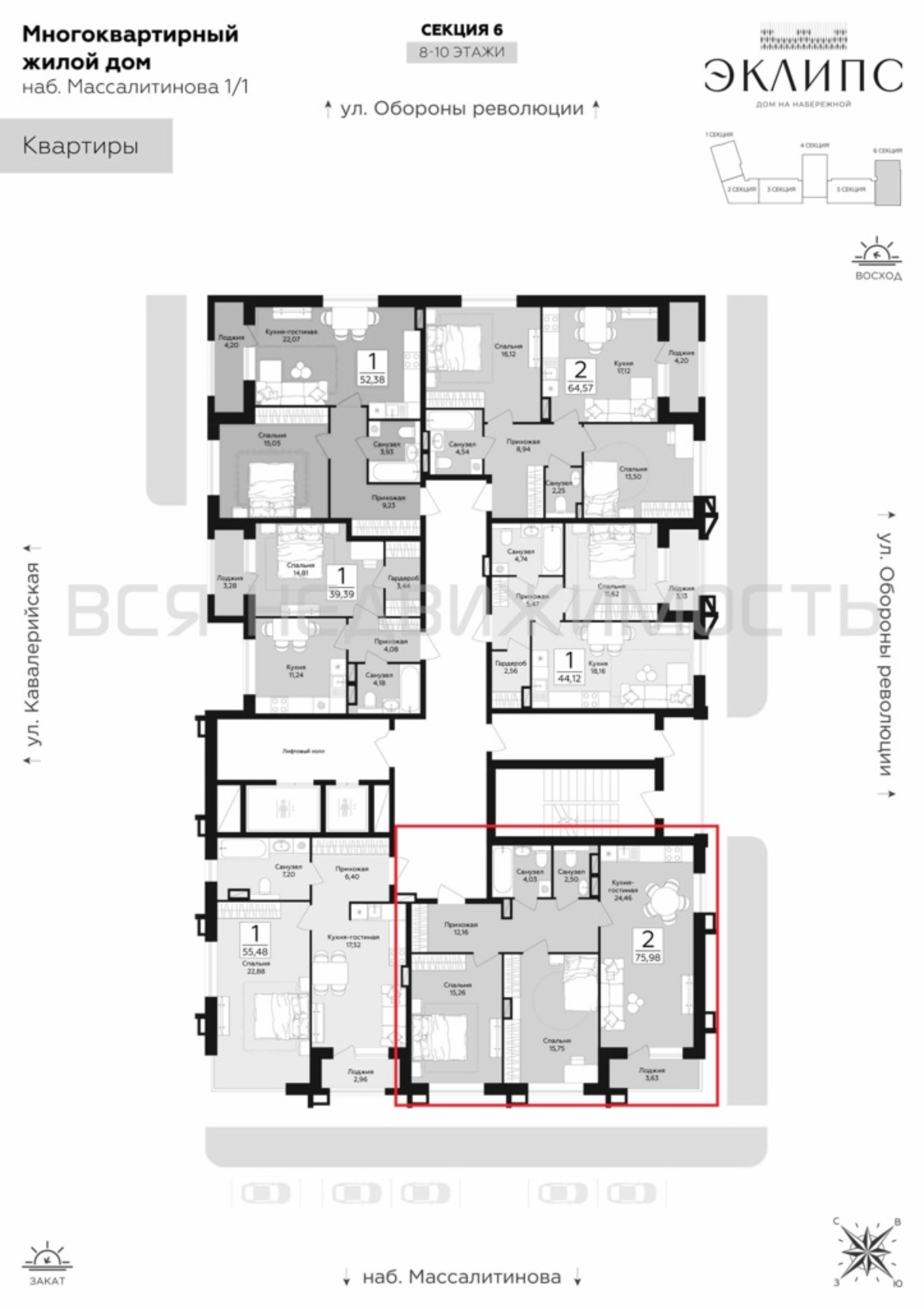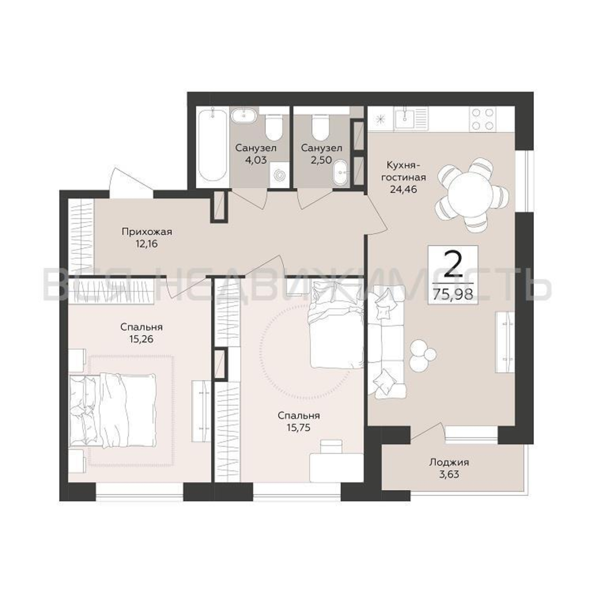2-комнатная квартира, 75.98 м² 9/12 этаж ID объекта 100134579