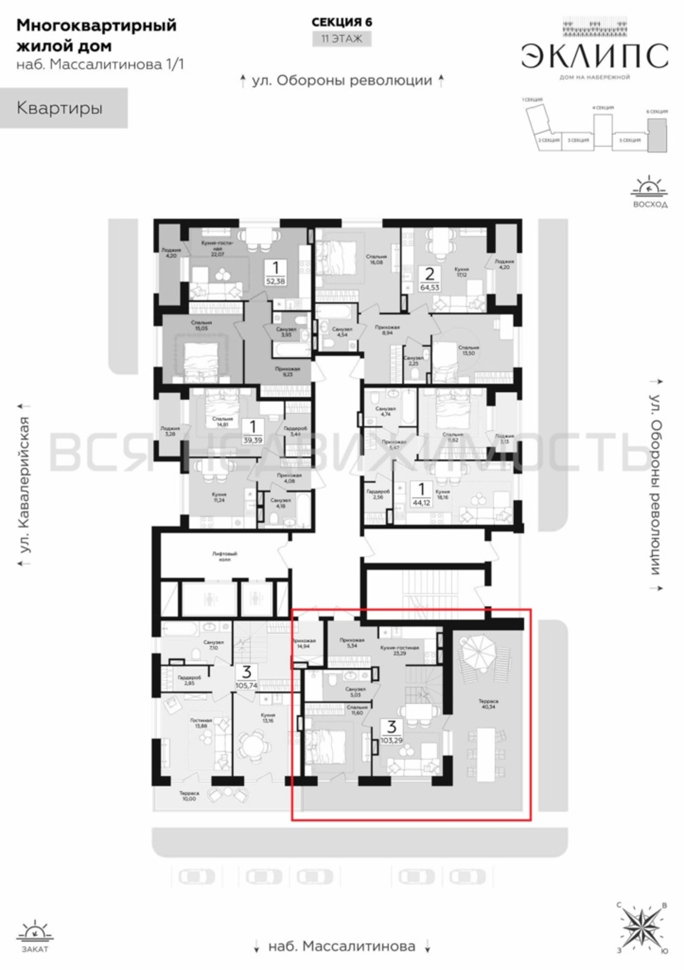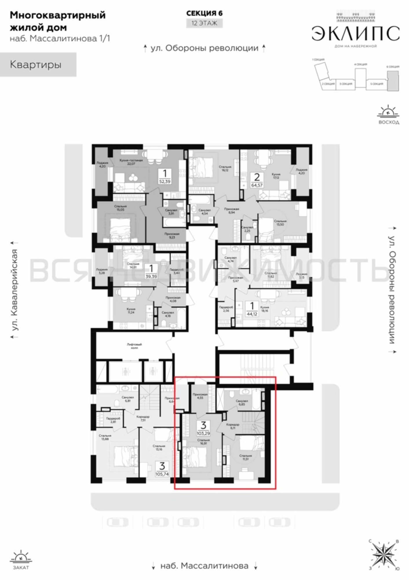 3-комнатная квартира, 103.29 м² 11/12 этаж ID объекта 100134591
