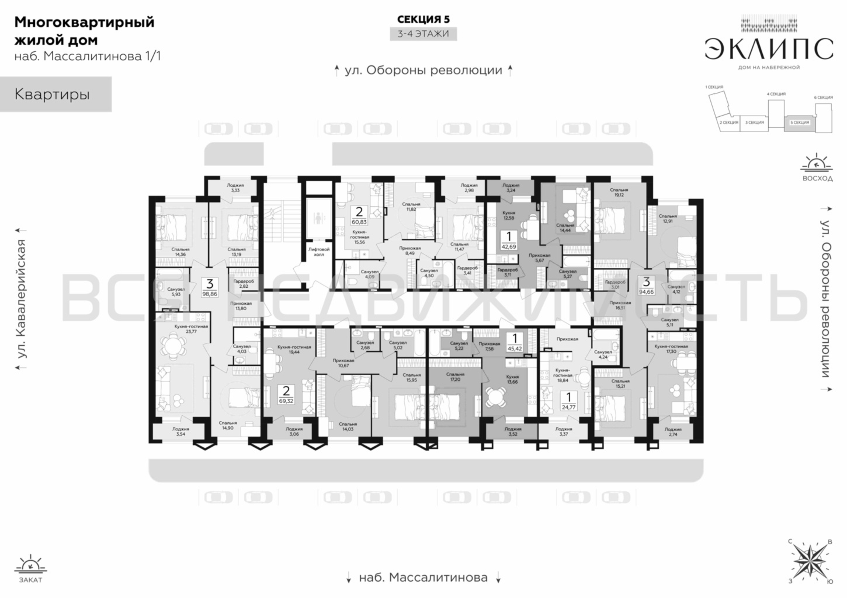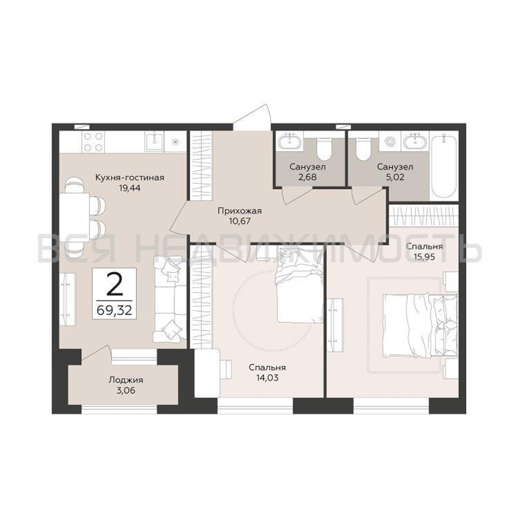 2-комнатная квартира, 69.32 м² 3/12 этаж ID объекта 100134619
