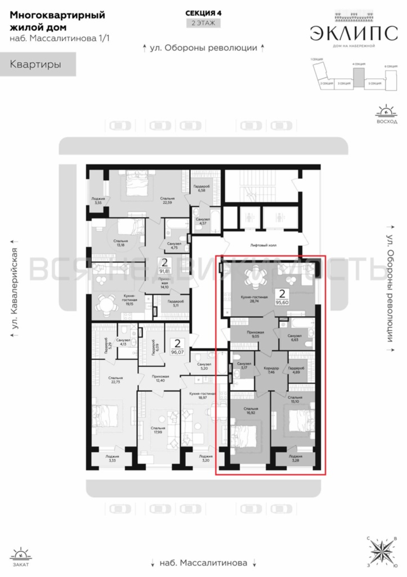 2-комнатная квартира, 95.60 м² 2/12 этаж ID объекта 100134644