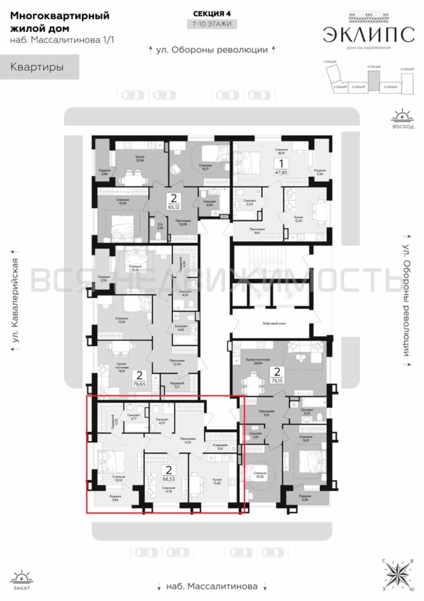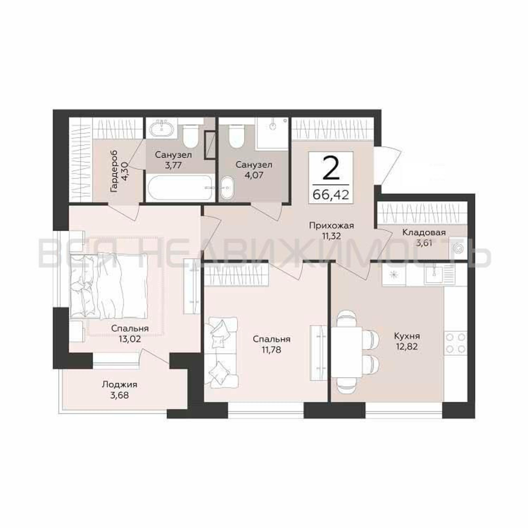 2-комнатная квартира, 66.42 м² 7/12 этаж ID объекта 100134668