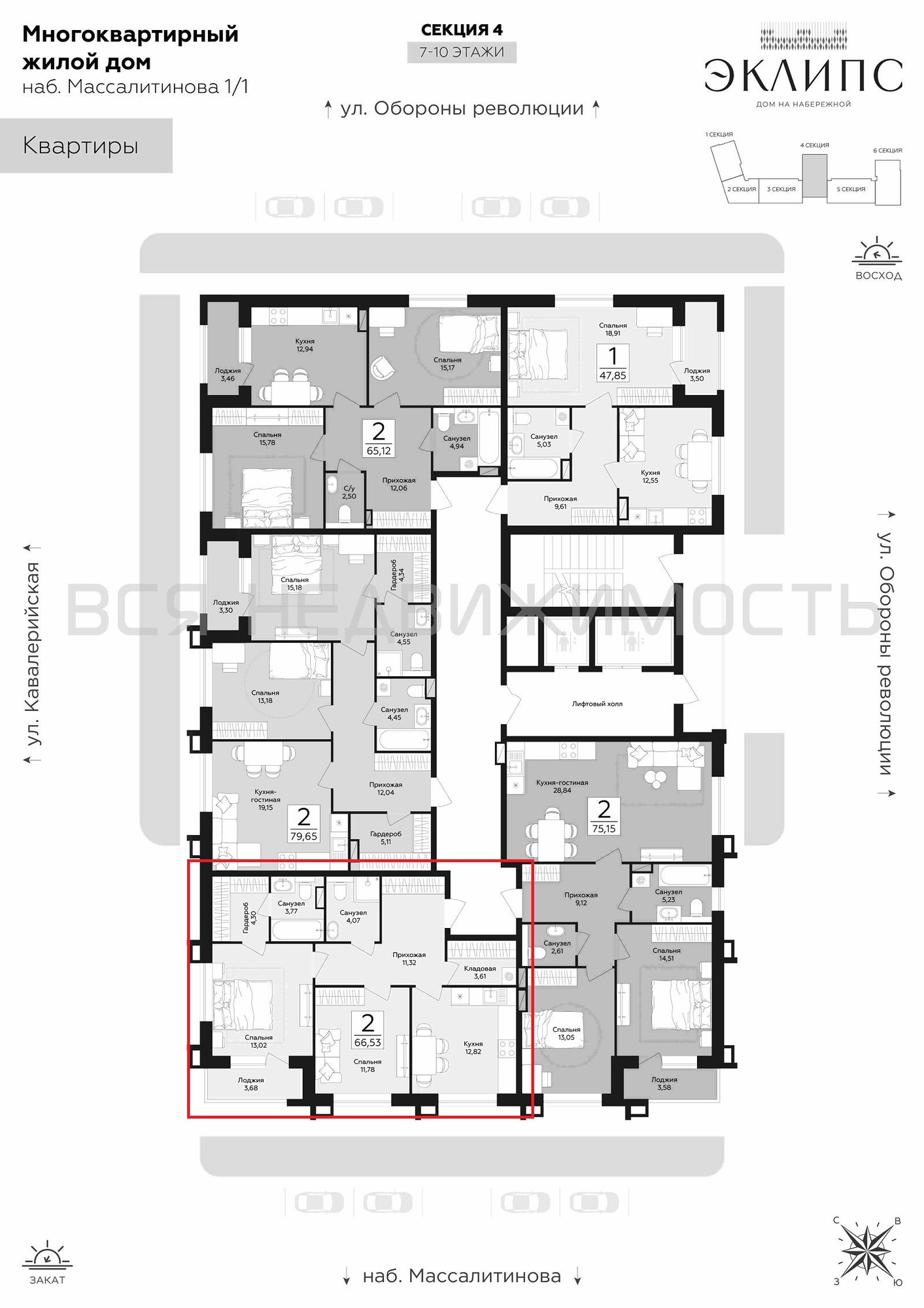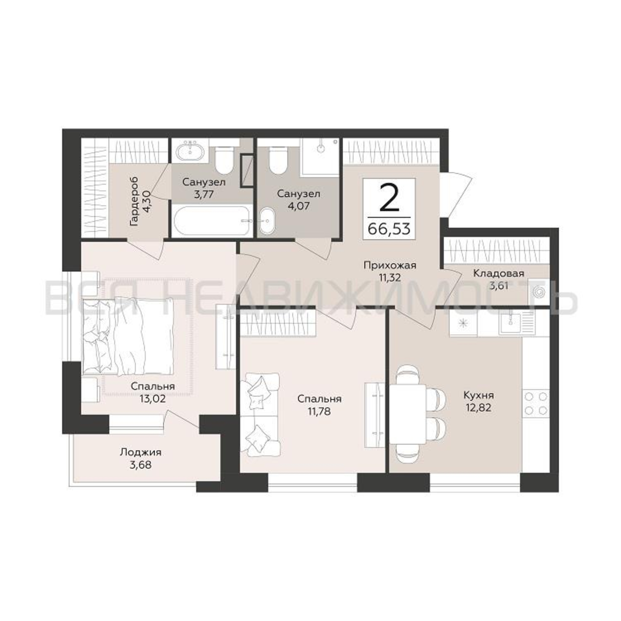 2-комнатная квартира, 66.53 м² 9/12 этаж ID объекта 100134678