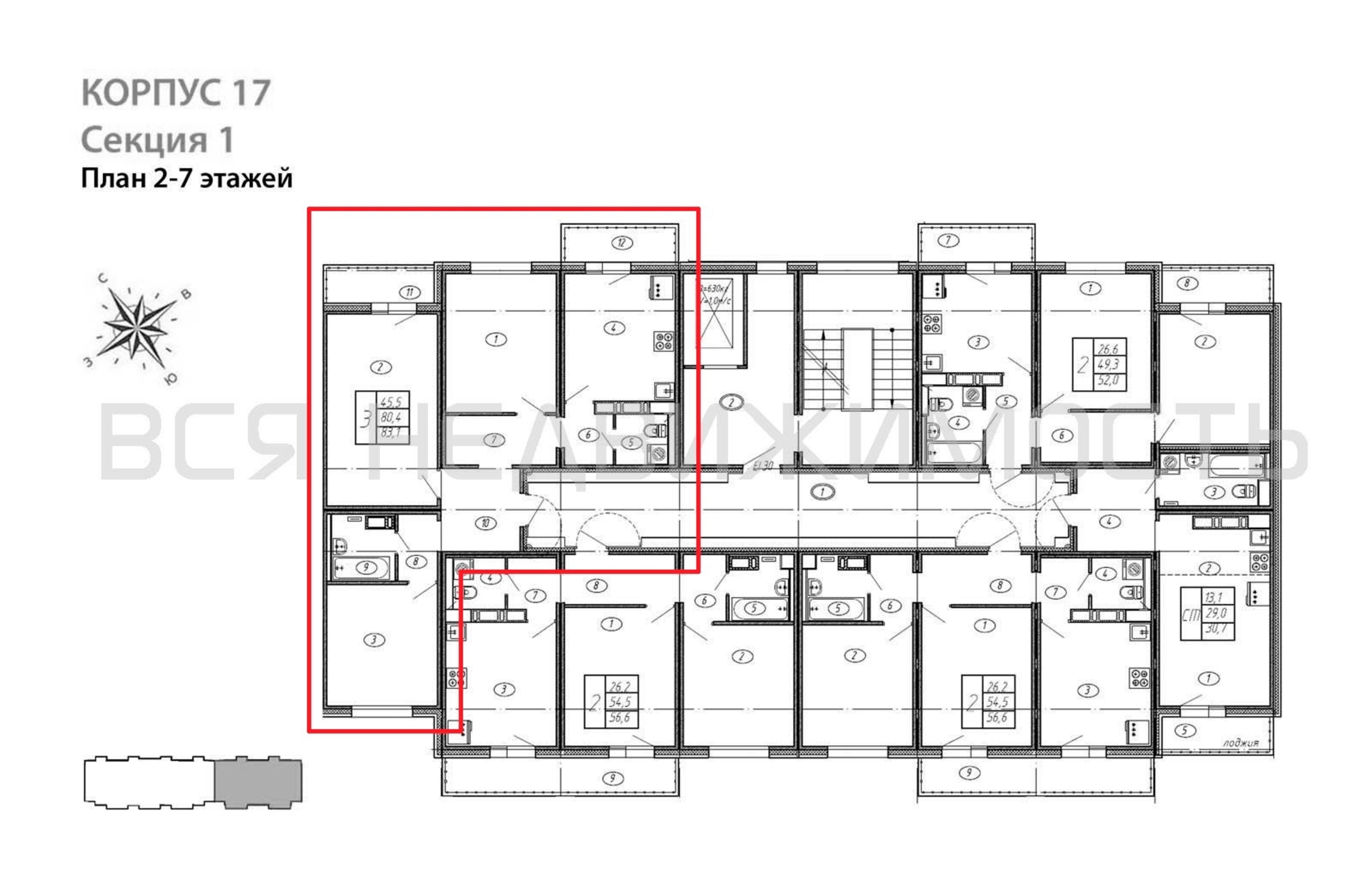 3-комнатная квартира, 83.10 м² 4/7 этаж ID объекта 100134942