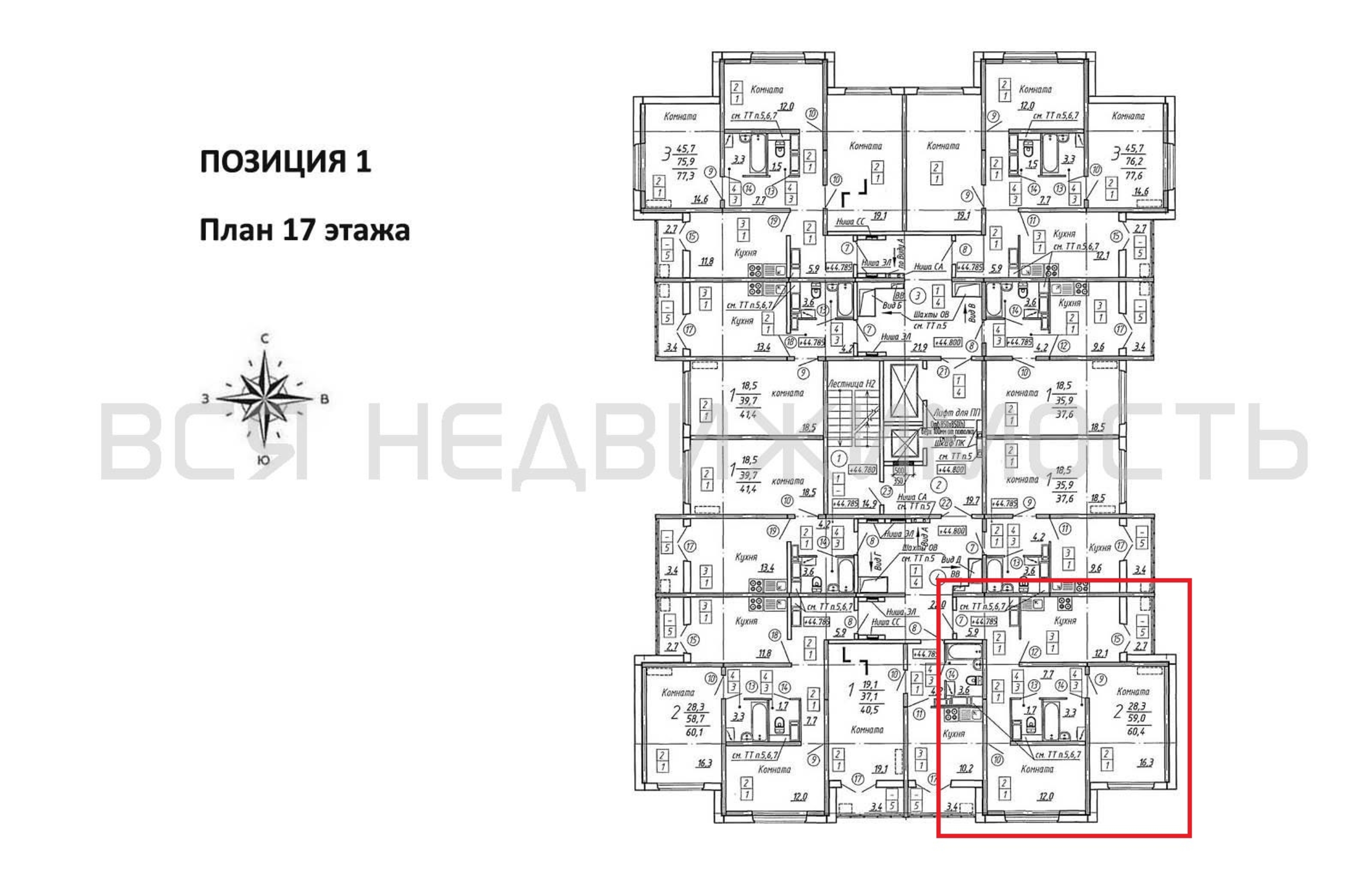 2-комнатная квартира, 60.40 м² 17/17 этаж ID объекта 100136199