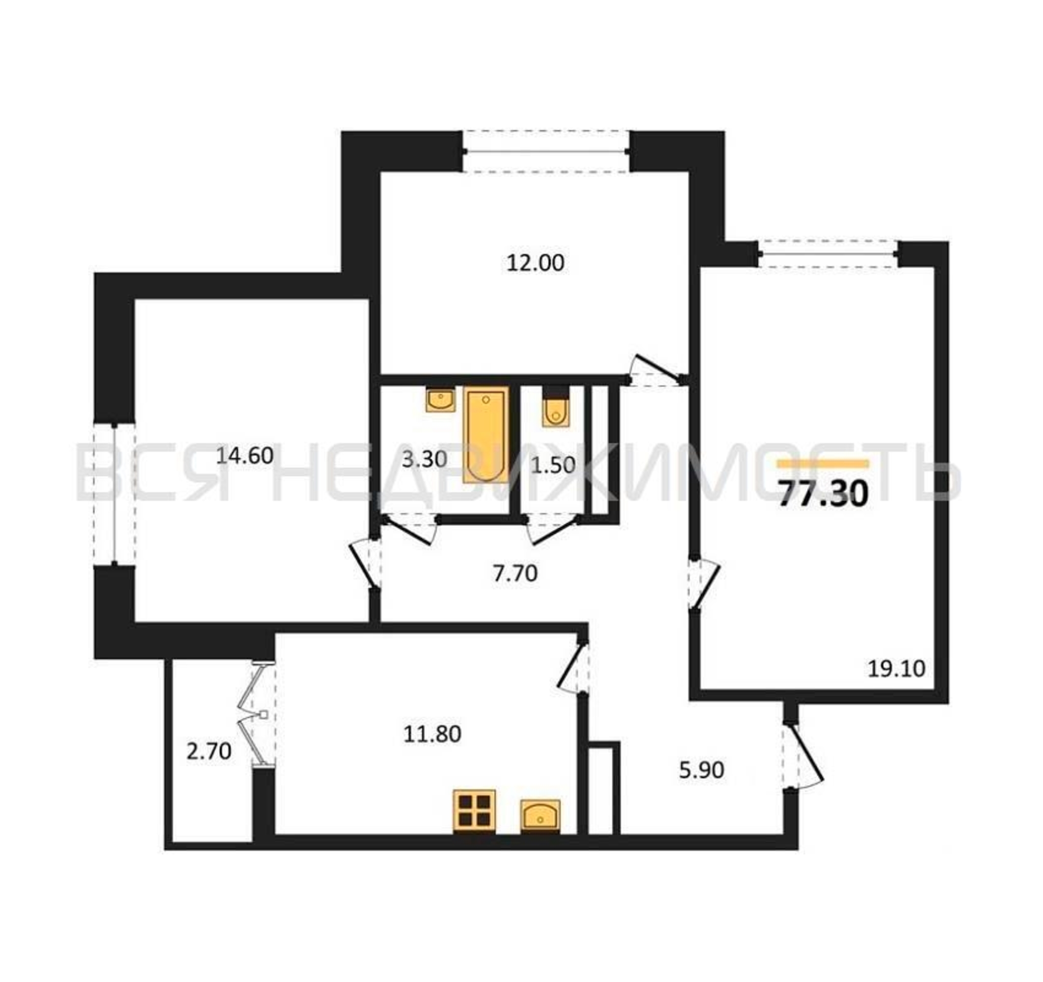 3-комнатная квартира, 77.30 м² 3/17 этаж ID объекта 100136220