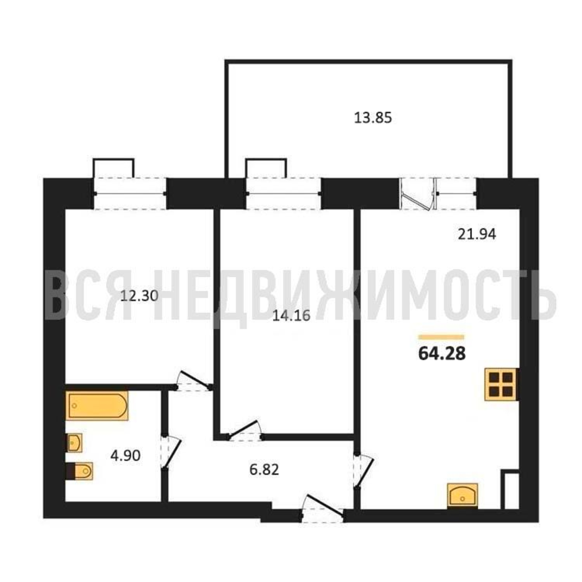 Строительная площадь64.28 м²