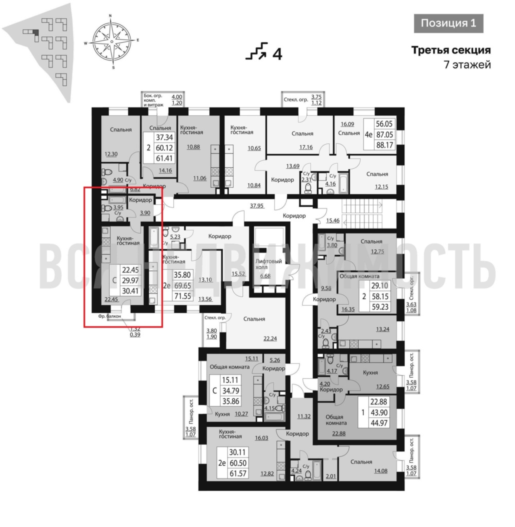 Квартиры-студии, 30.41 м² 4/7 этаж ID объекта 100136431