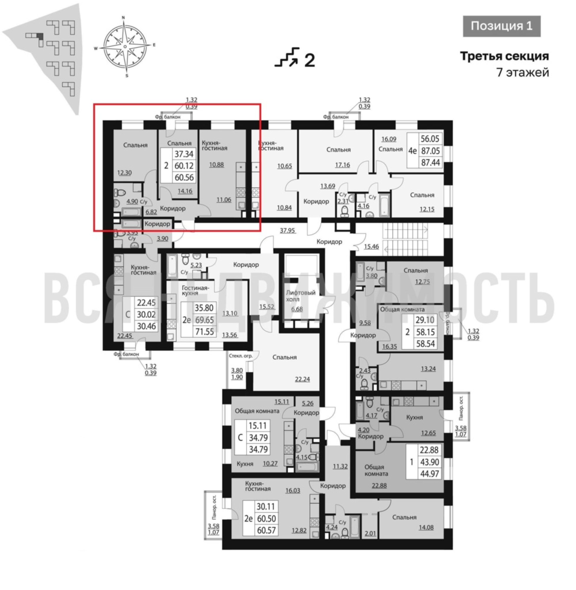 2-комнатная квартира, 60.56 м² 2/10 этаж ID объекта 100136433