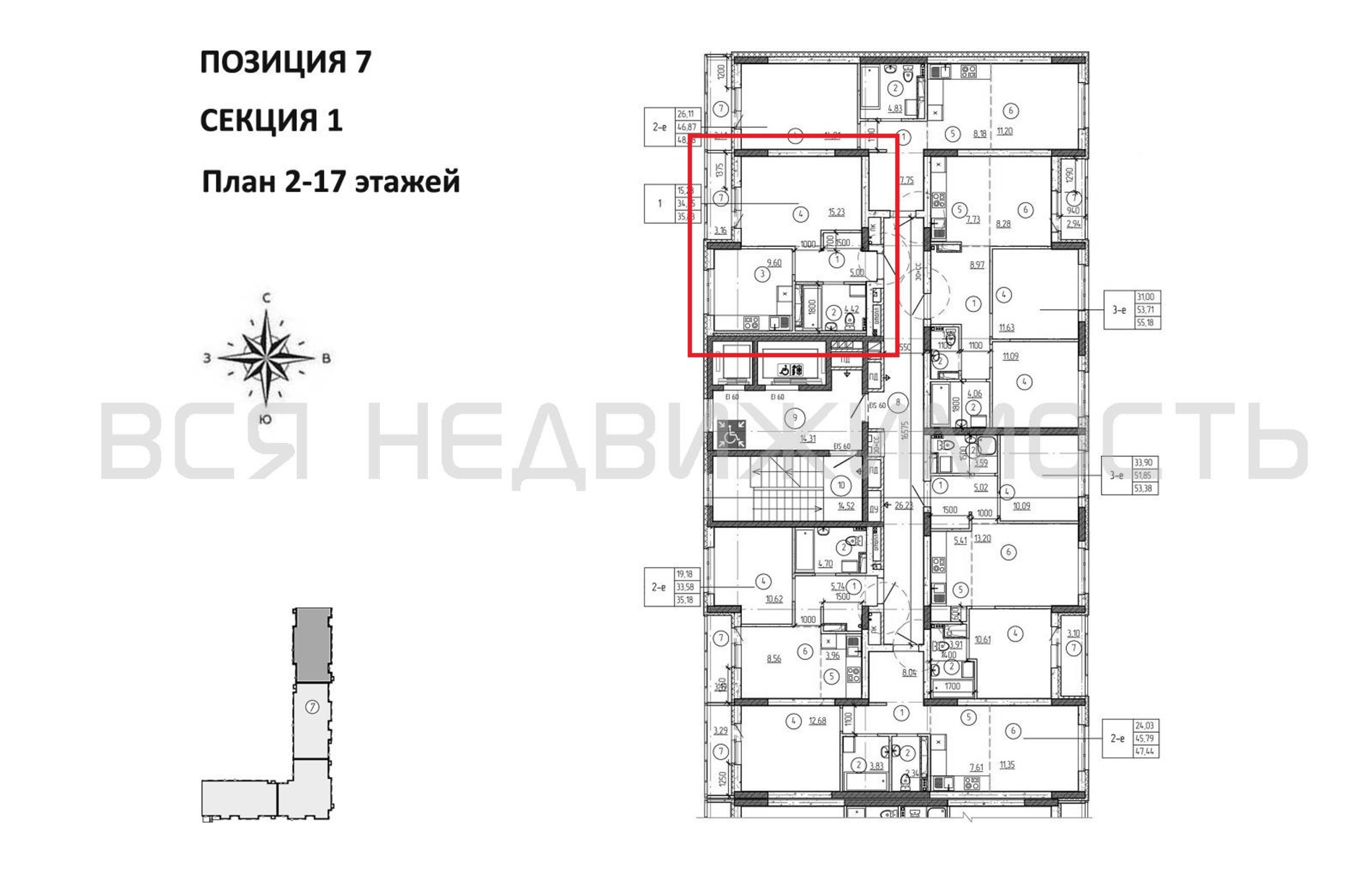 1-комнатная квартира, 35.83 м² 2/17 этаж ID объекта 100136513