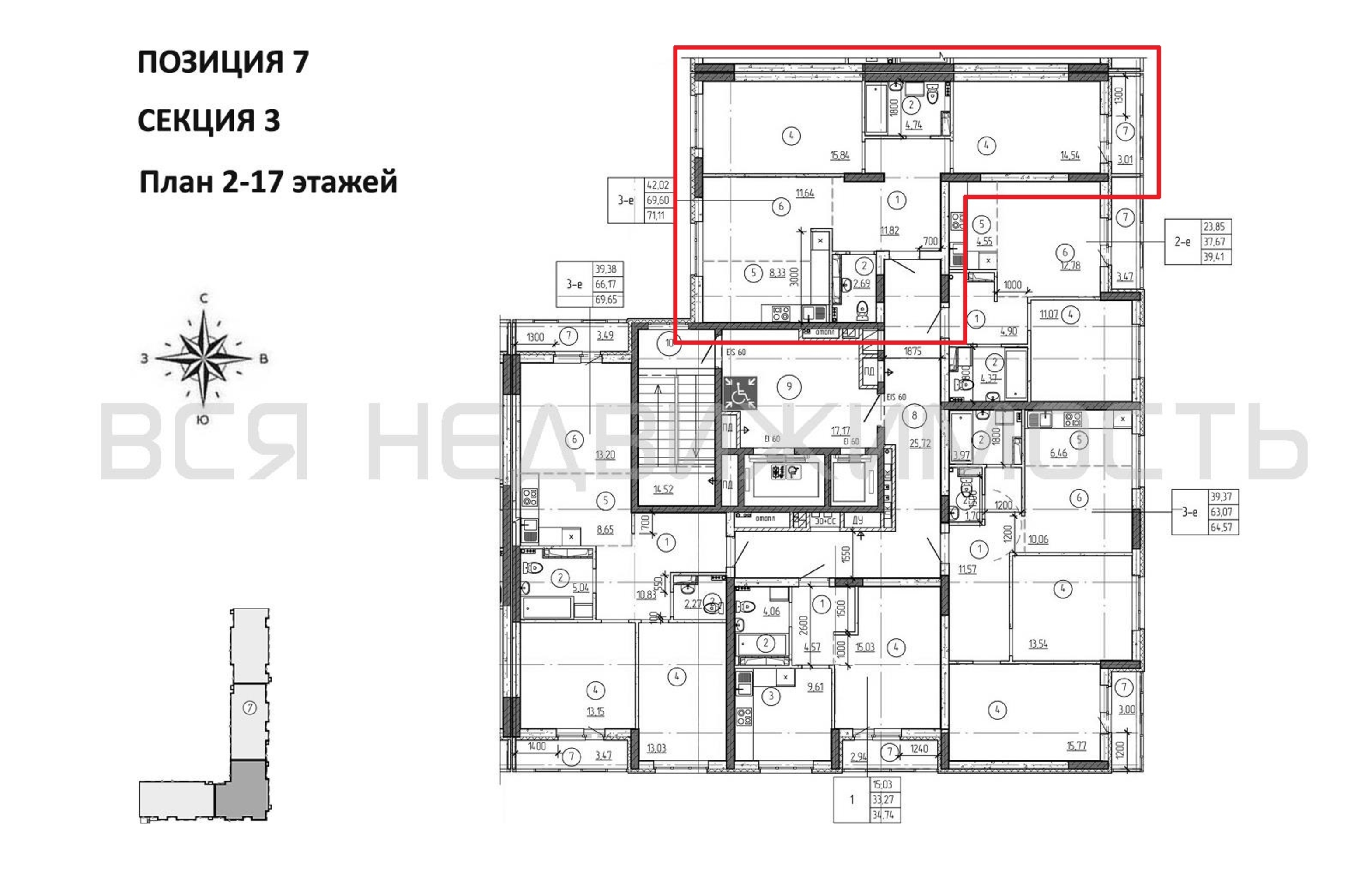 2-комнатная квартира, 71.11 м² 16/17 этаж ID объекта 100136759