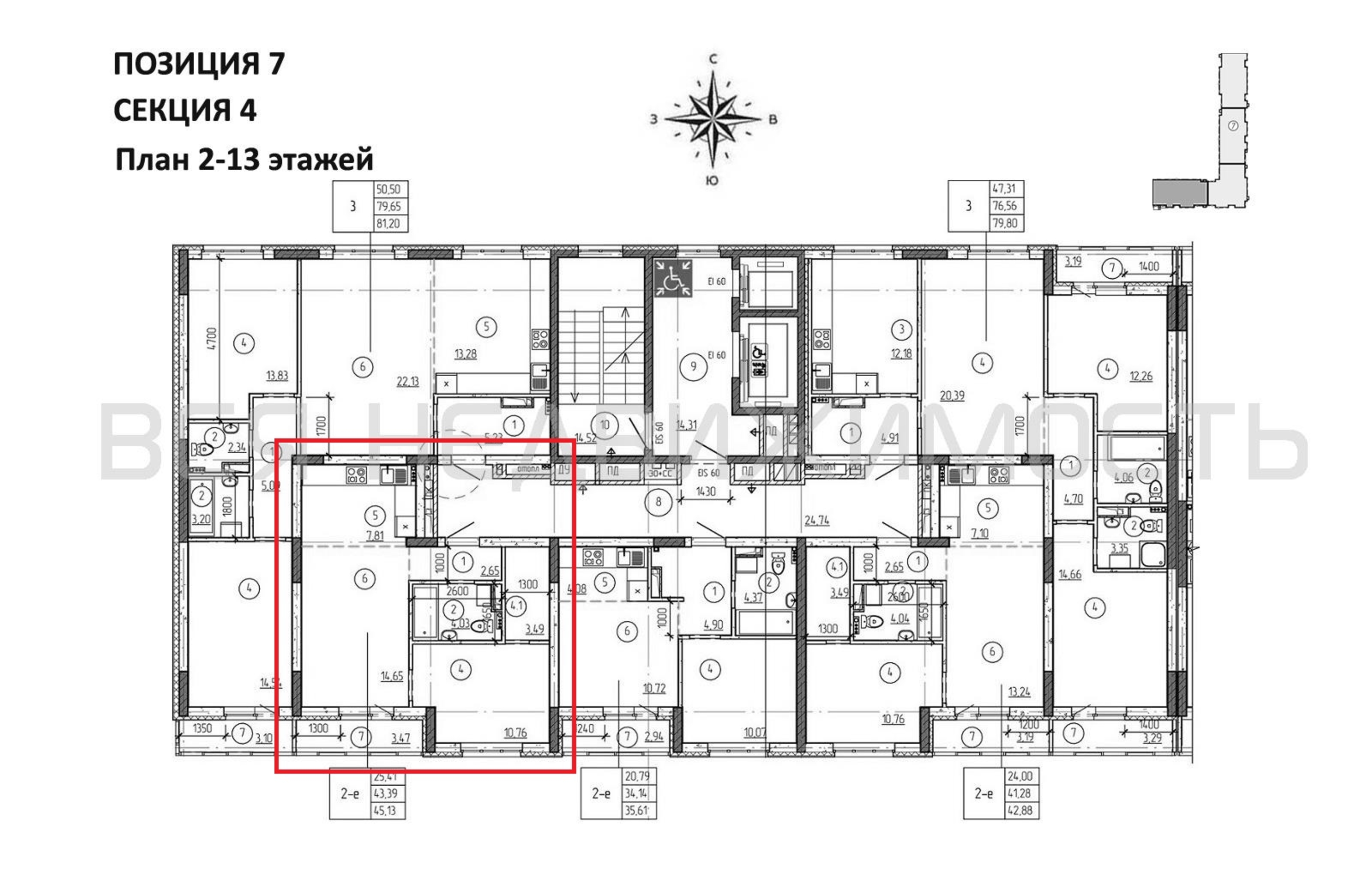 1-комнатная квартира, 45.13 м² 4/13 этаж ID объекта 100136782