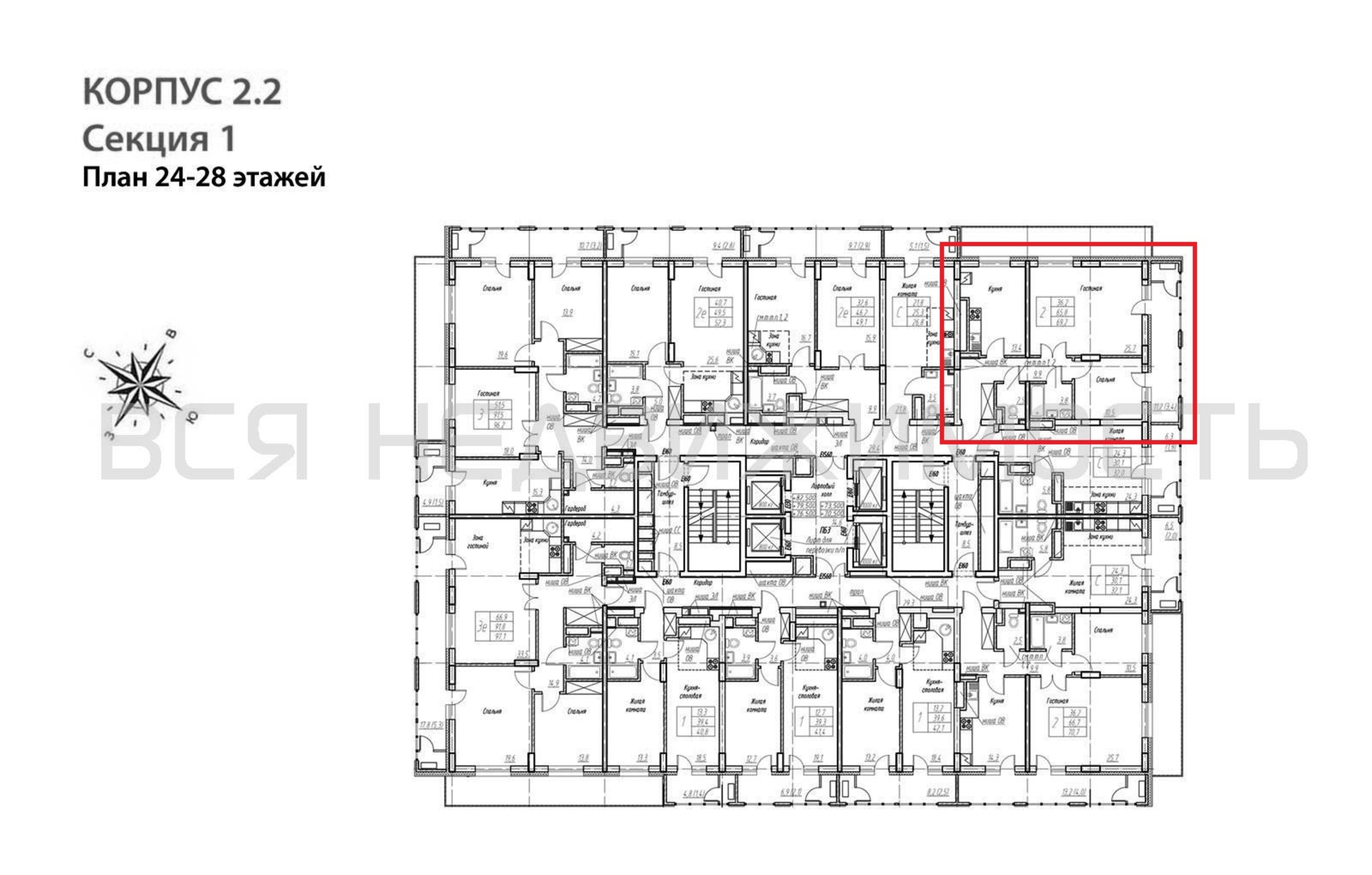 2-комнатная квартира, 69.20 м² 26/32 этаж ID объекта 100136882