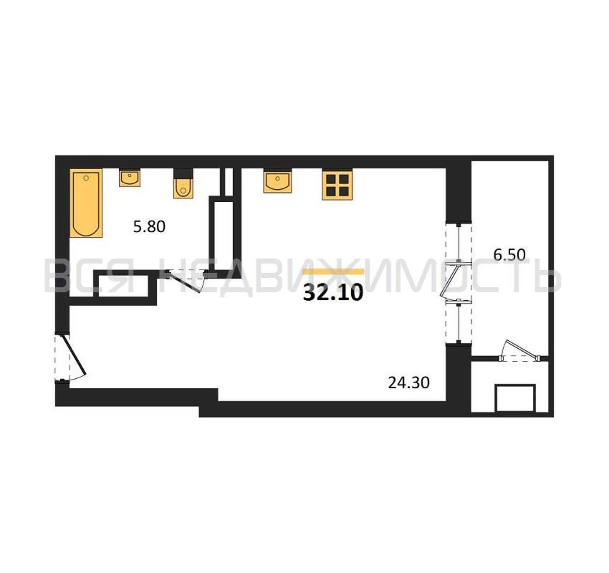 Квартиры-студии, 32.10 м² 26/32 этаж ID объекта 100136891